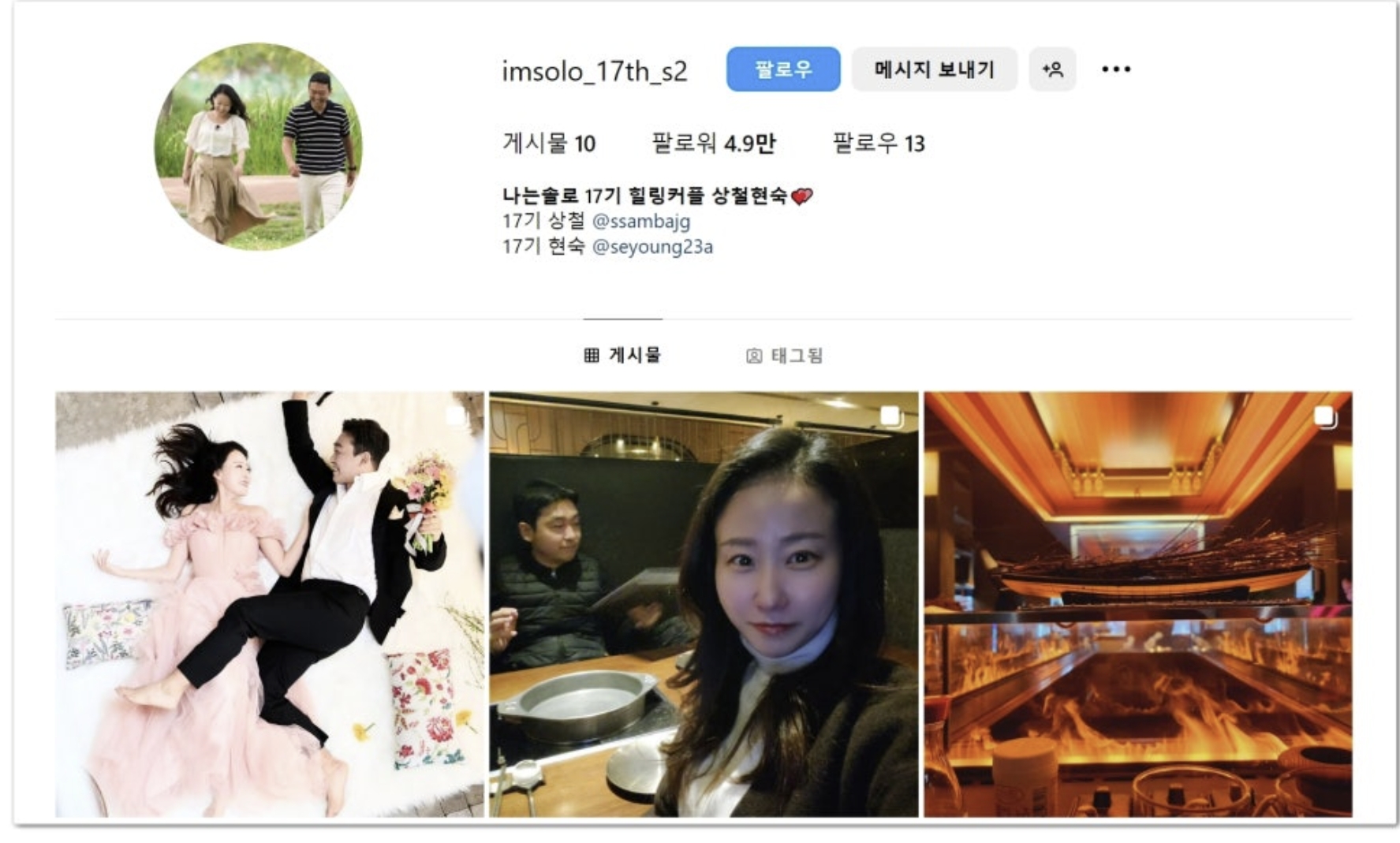 상철과 현숙은 럽스타그램을 통해 결혼 소식을 전하기도 했습니다.