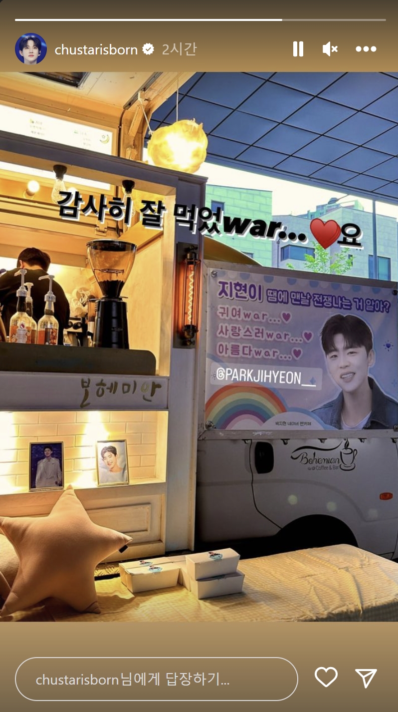 박지현 팬분들의 커피차 서포트 소식과 미스터 로또 예능 촬영 소식
