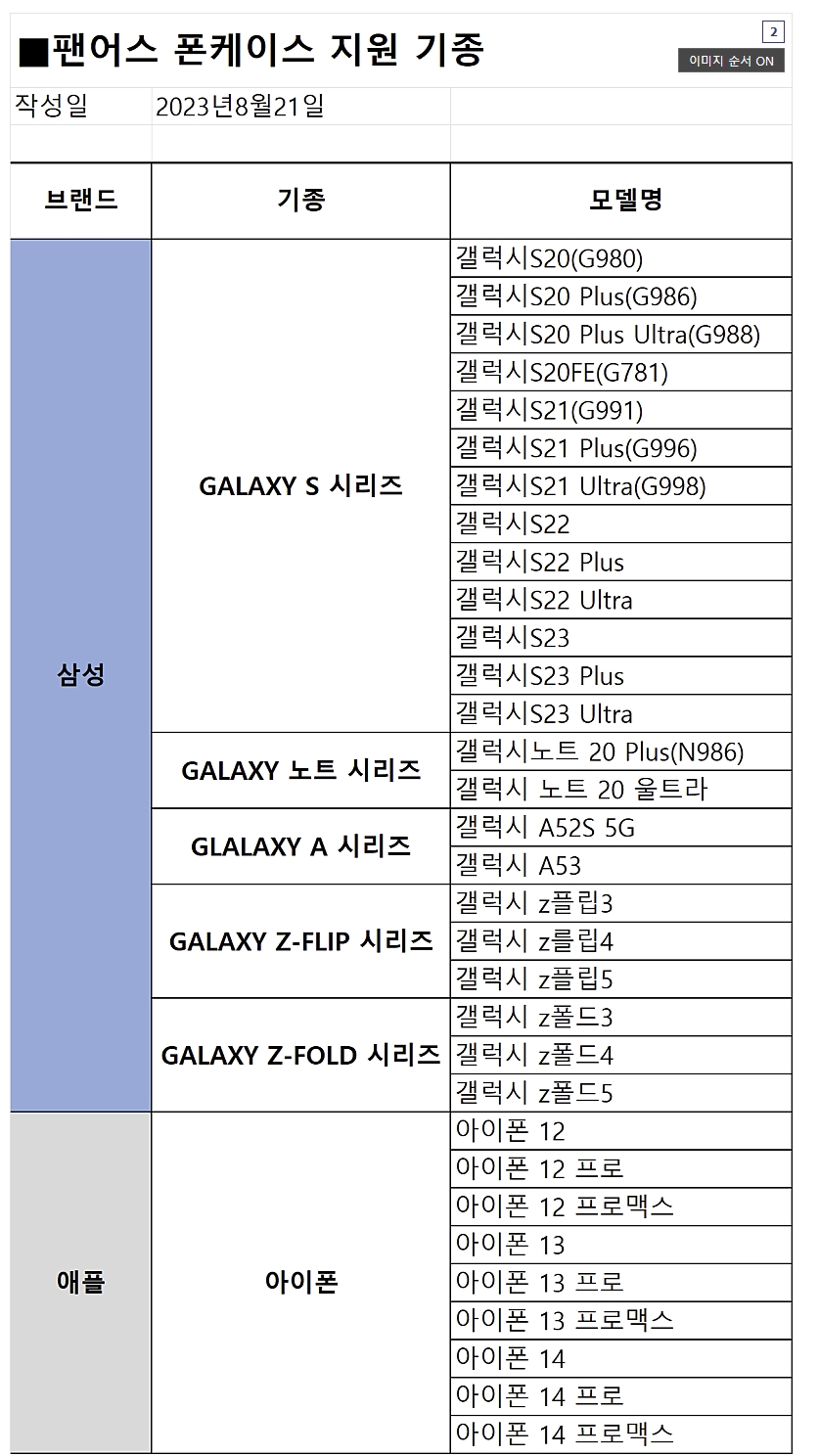 팬어스 폰케이스 지원 기종은 다음과 같습니다