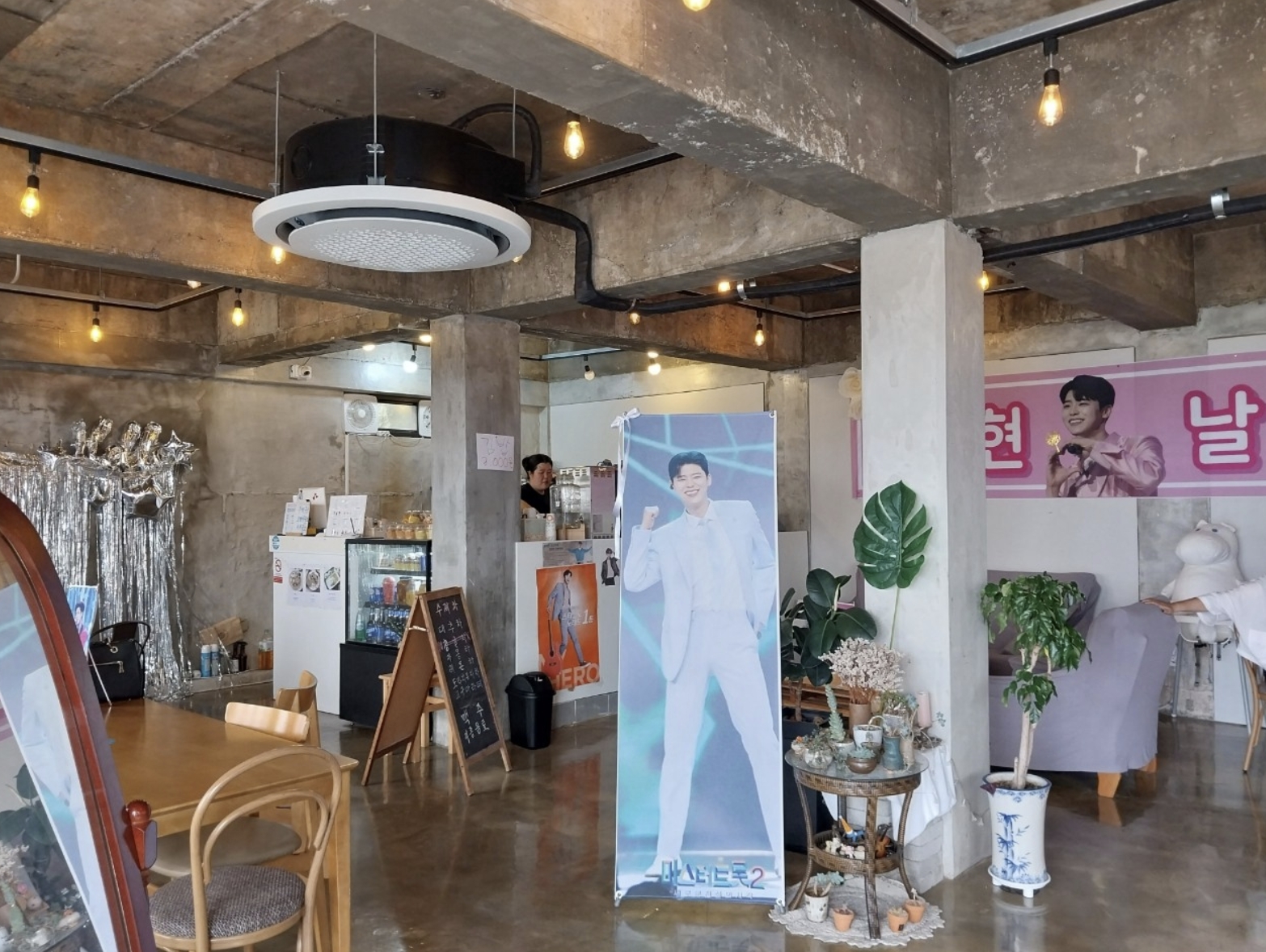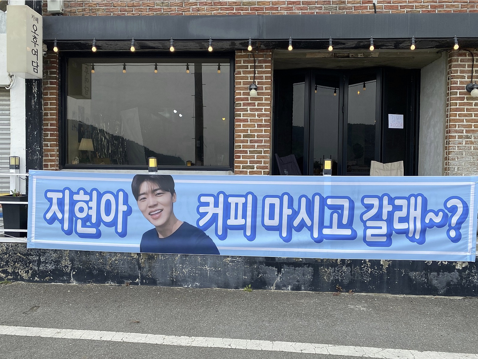 거제 엔돌핀님들은 카페를 통채로 빌려서 거제도에 박지현을 응원 오신 팬들을 위해 휴식 할수 있는 공간을 마련해 주었습니다