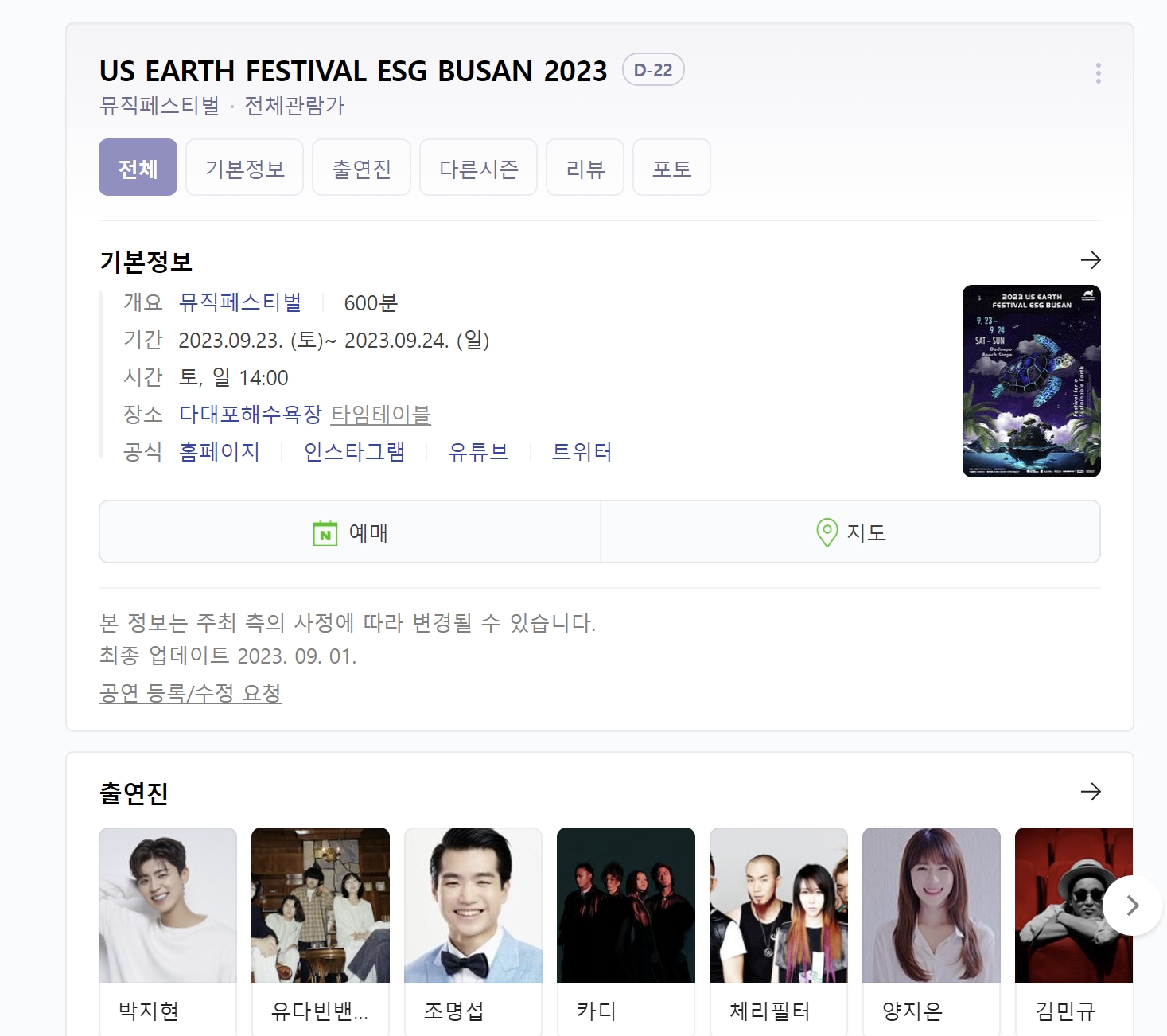 '어스어스 페스티벌'은 2023년9월23일토요일부터 24일 일요일까지 열리며 장소는 부산 다대포 해변 무대입니다