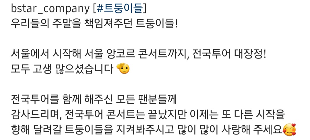 비스타 공계에서 전국투어를 마치며 인스타에 게시글과 사진을 올려주었습니다