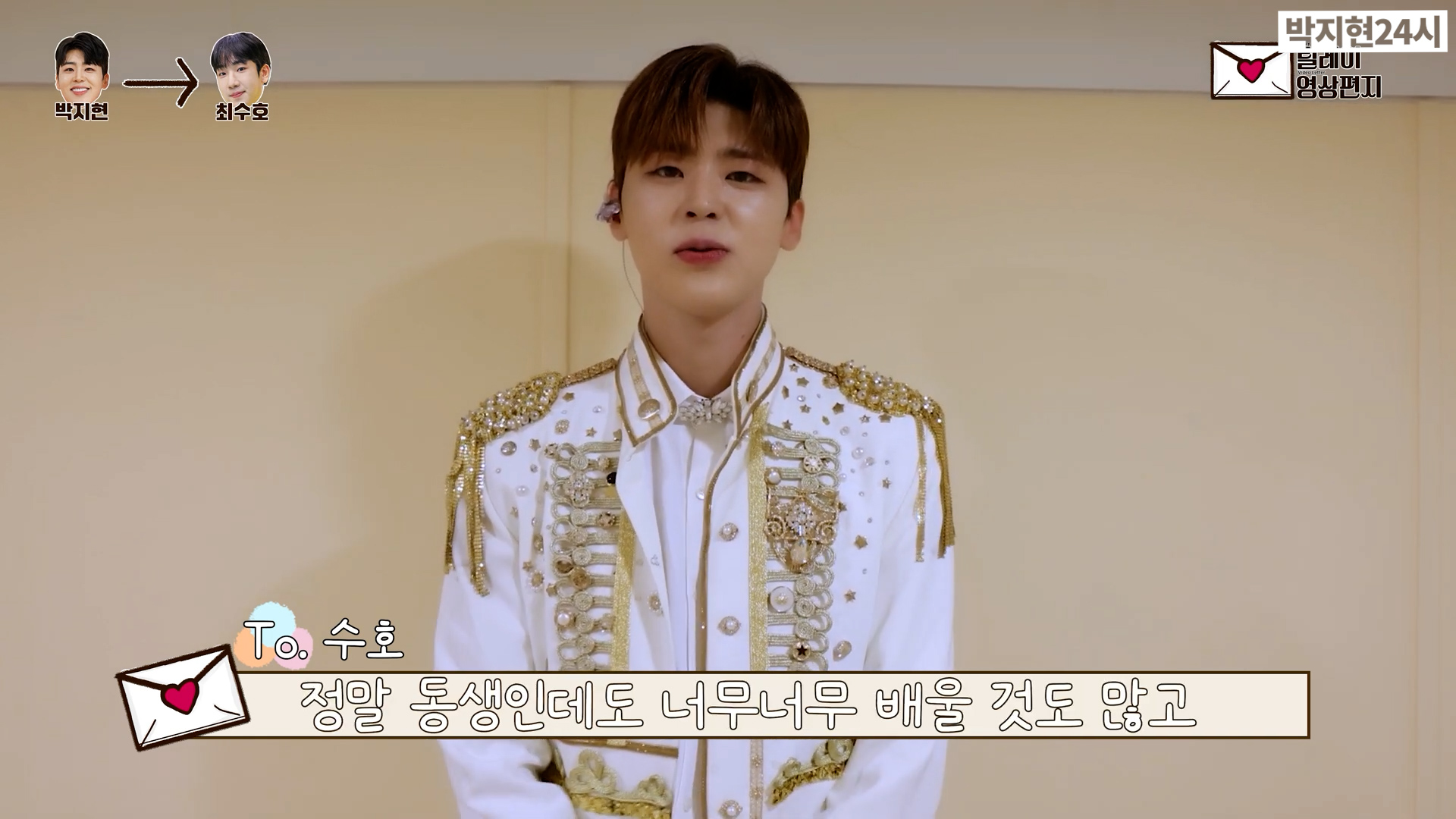박지현은 최수호에게 잘 챙겨주지 못해 항상 미안한 마음이라면서 동생인데도 배울점이 많다고 말하며 콘서트 후 고기 같이 먹자고 영상편지를 남겼습니다