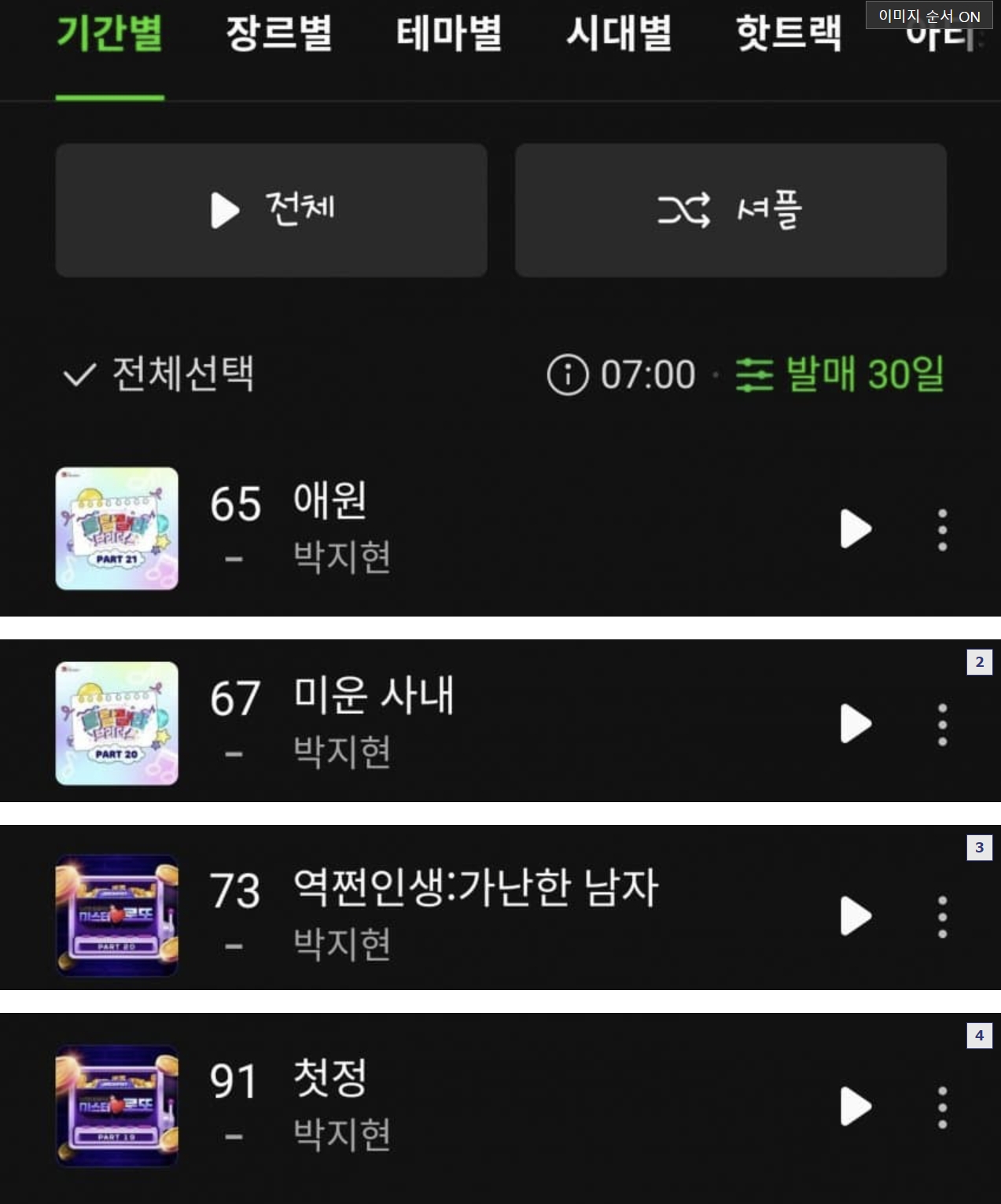 이외에도 박지현이 부른 미운사내 67위, 역쩐인생 73위, 첫정91위를 기록하며 무려 4곡이나 차트인시키며 인기를 실감케 하고 있습니다