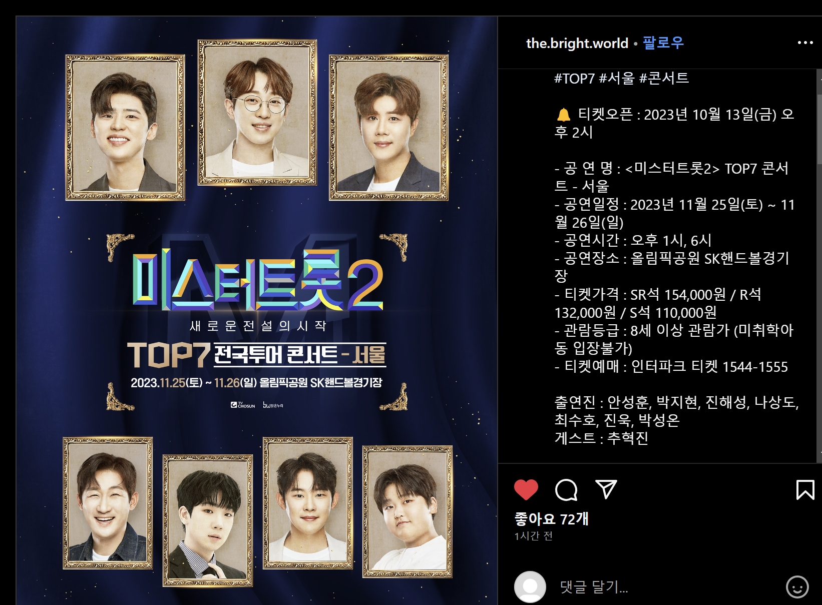 미스터트롯2 탑7의 콘서트 정말 기대하겠습니다!