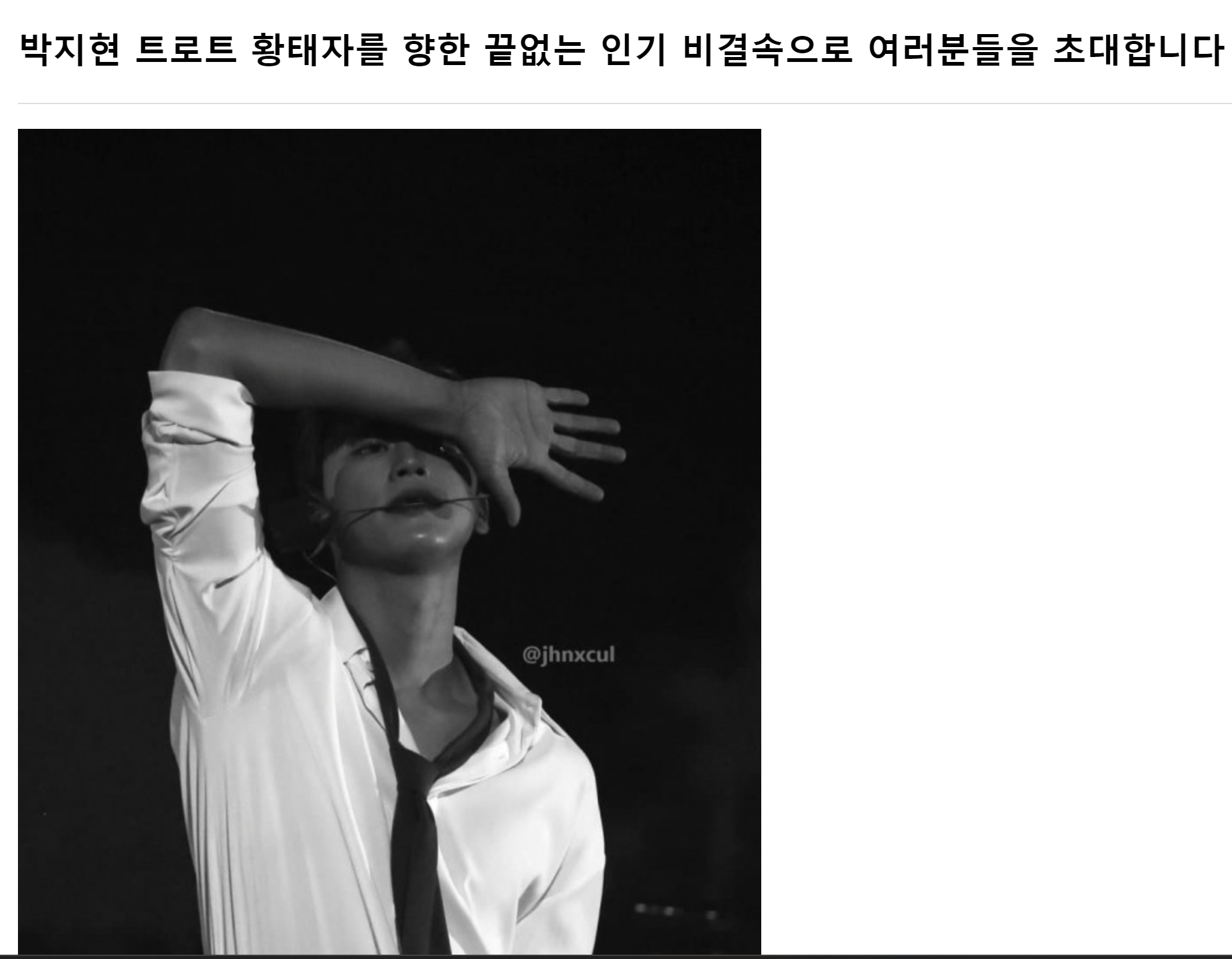'박지현 트로트 황태자를 향한 끝없는 인기 비결속으로 여러분들을 초대합니다'란 기사가 게재됐습니다