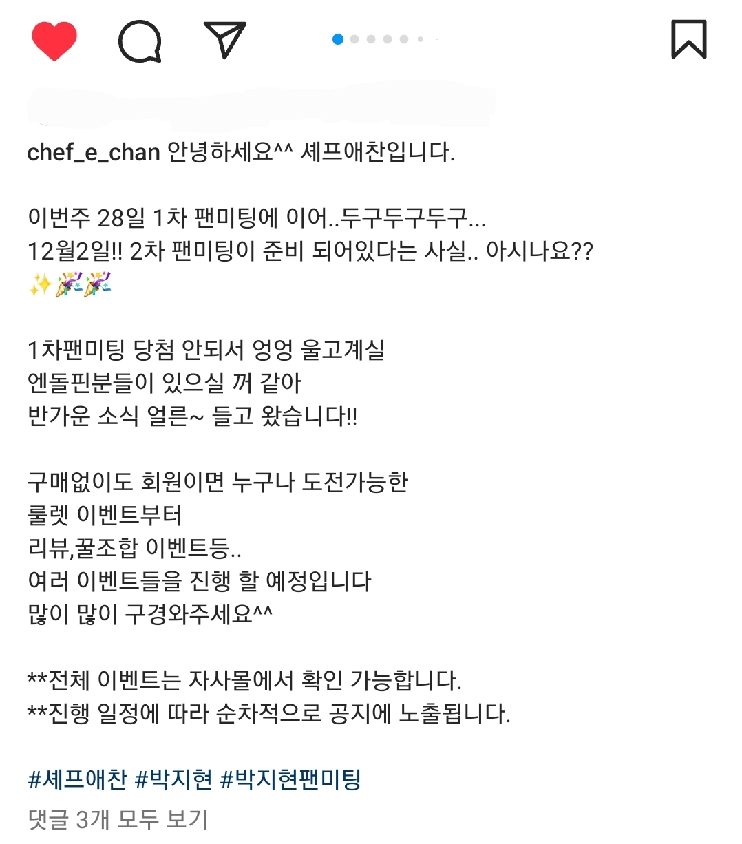 셰프애찬 공식 인스타에 2차 팬미팅에 관해 올려주었습니다