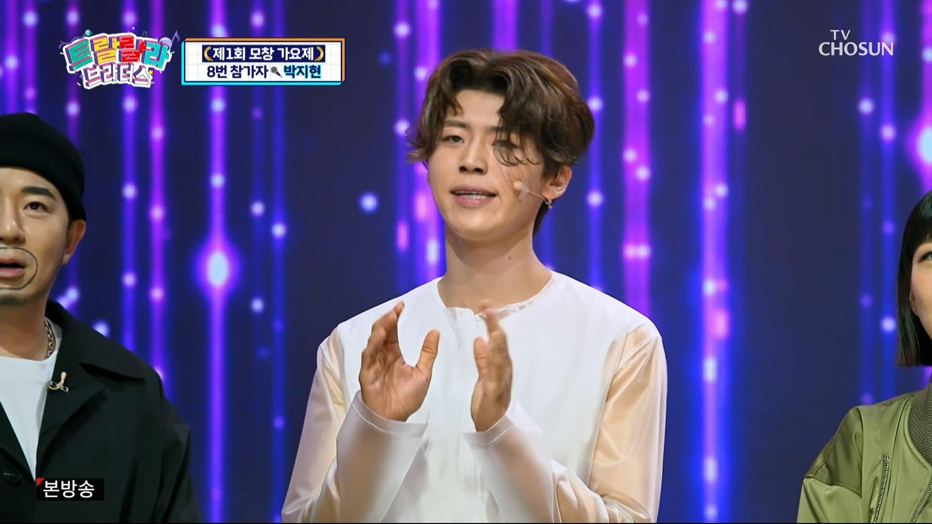 박지현은 최수호와 대결을 펼치는데 박진영과 송대관으로 변신해 멋진 모창 대결을 펼칩니다