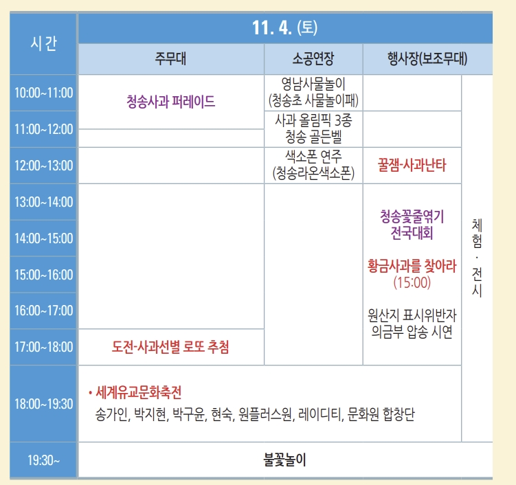 11월4일 토요일 오후6시 경북 청송군에서 청송사과축제가 개최됩니다