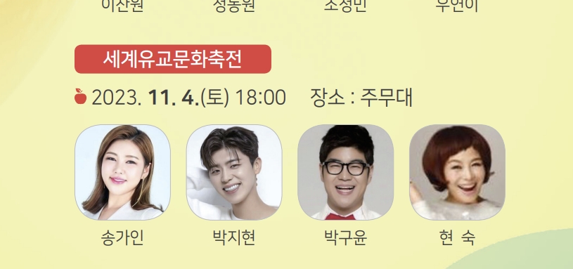 청송사과축제는 문화체육관광부 지정 대한민국 대표축제중 하나이며 세계유교문화축전 행사로 박지현이 출연합니다