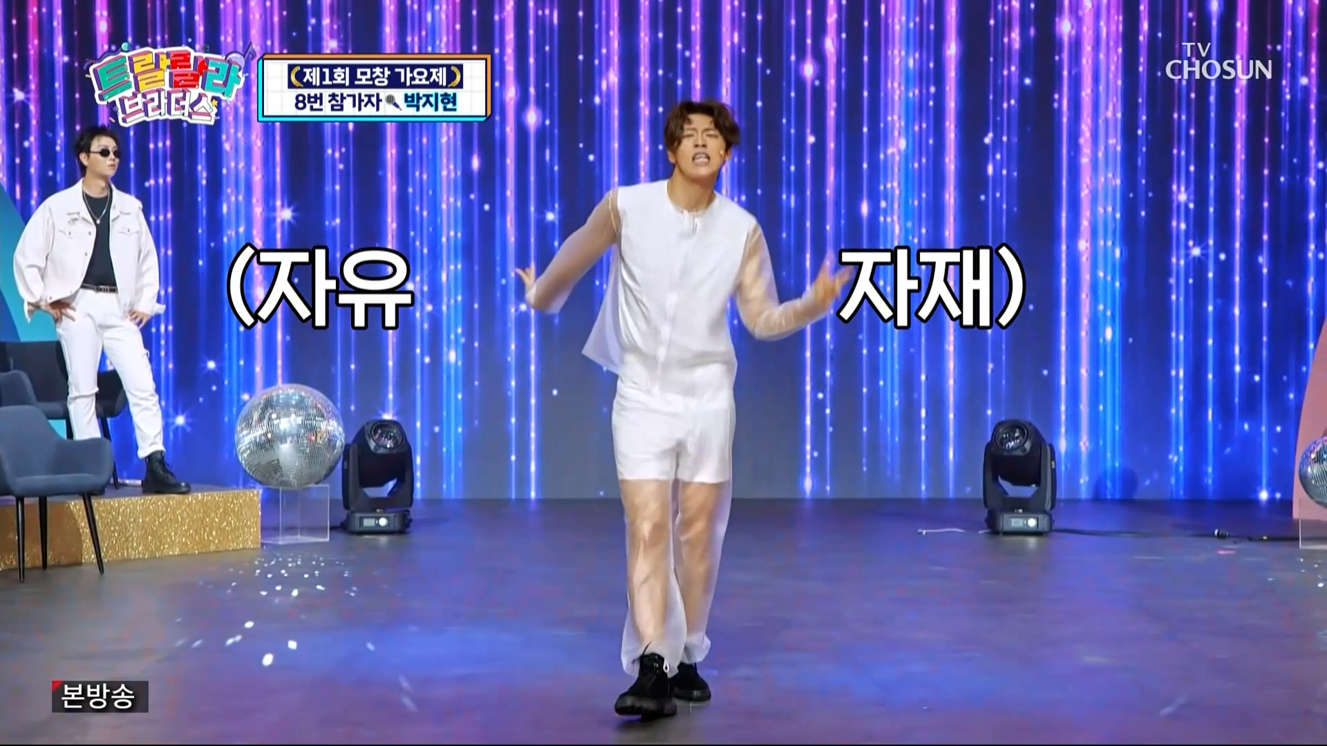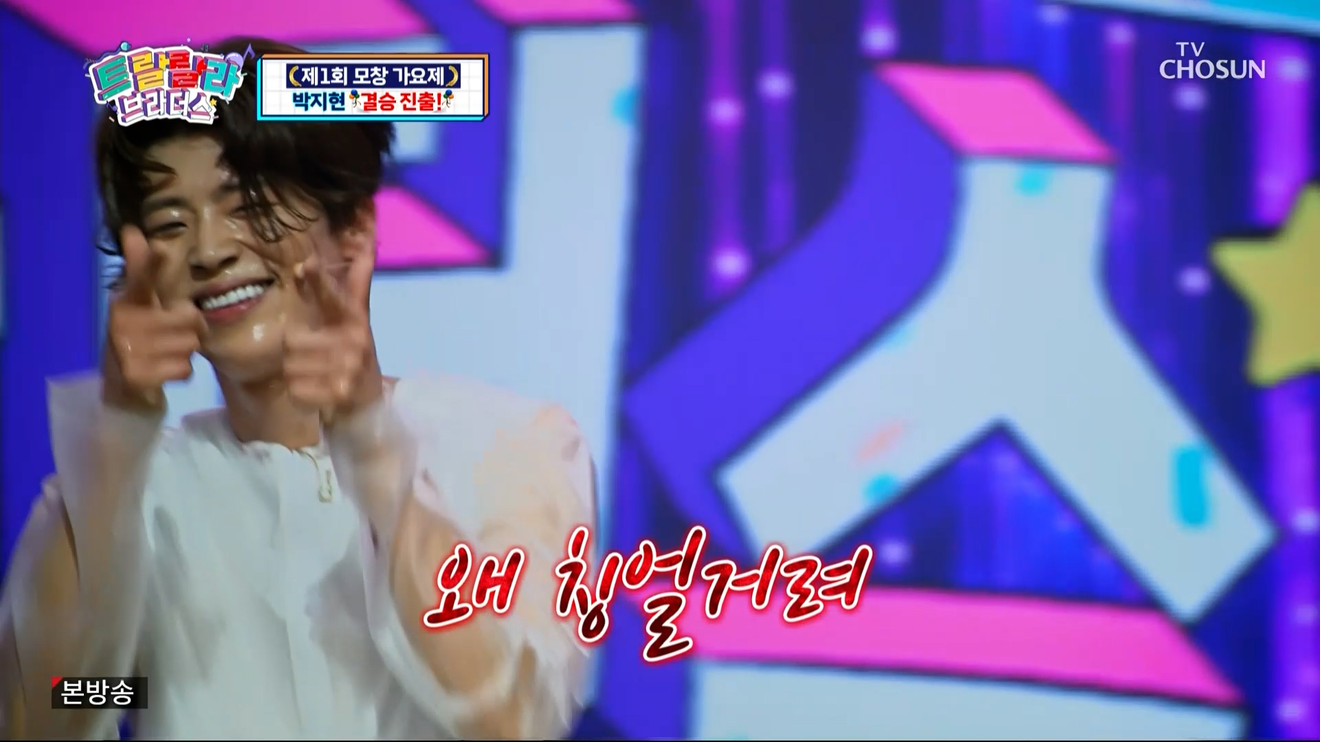 박지현은 최수호와 대결을 펼치는데 박진영과 송대관으로 변신해 멋진 모창 대결을 펼칩니다