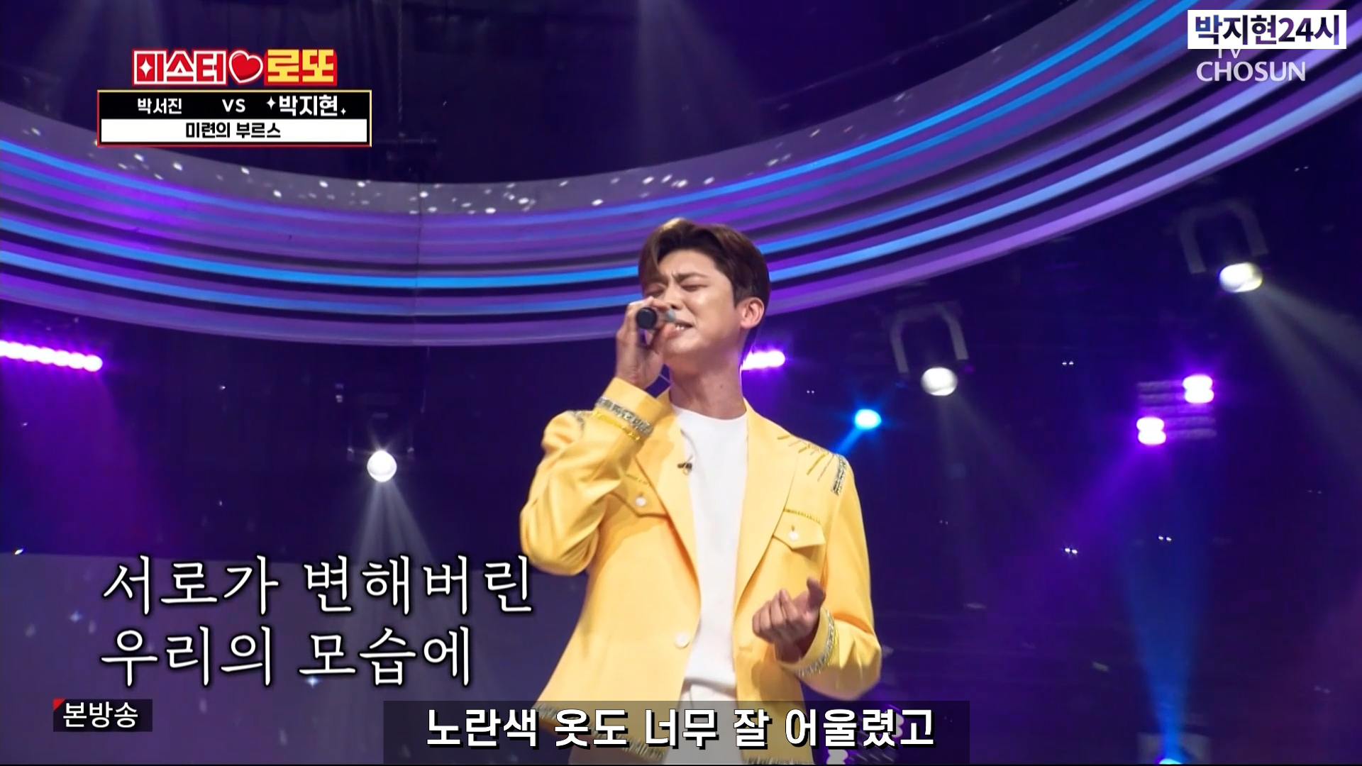 노란색 옷도 너무 잘 어울렸고 '미련의 부르스'도 너무 좋았던 미스터 로또였습니다
