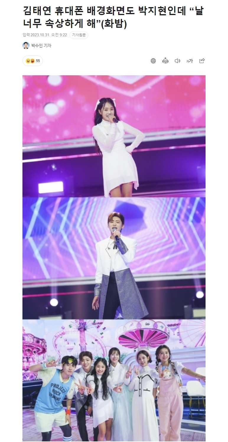 또 김태연 휴대전화 배경화면이 박지현이며 김태연은 태연차트 1위가 진해성에서 박지현으로 바꿨음을 발표했습니다