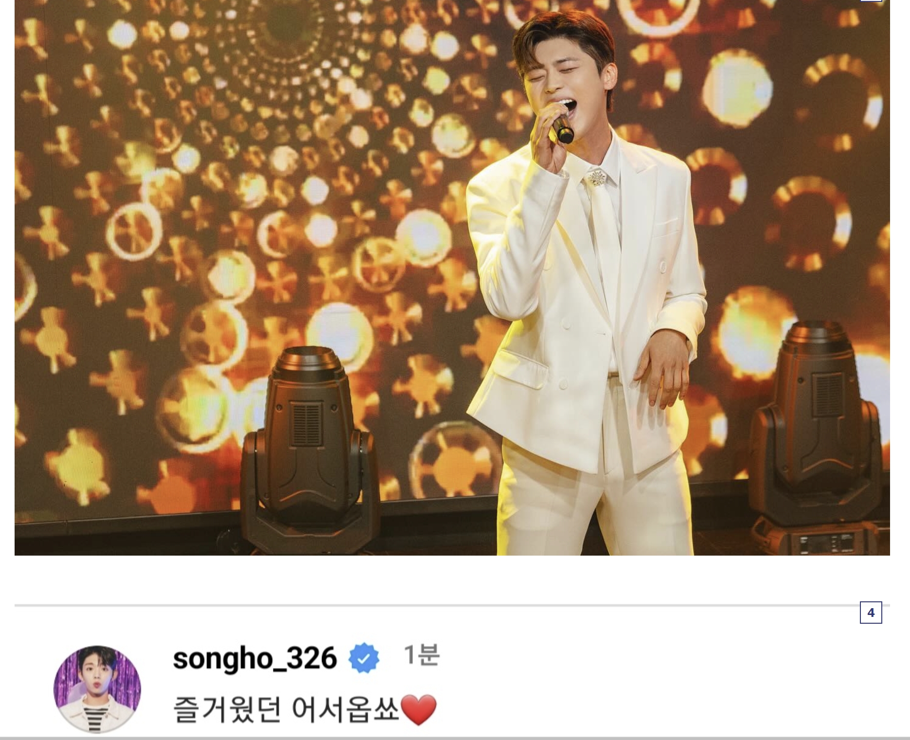장송호가 인스타에 '즐거웠던 어서옵쑈'란 글과 함께 사진을 공개했습니다