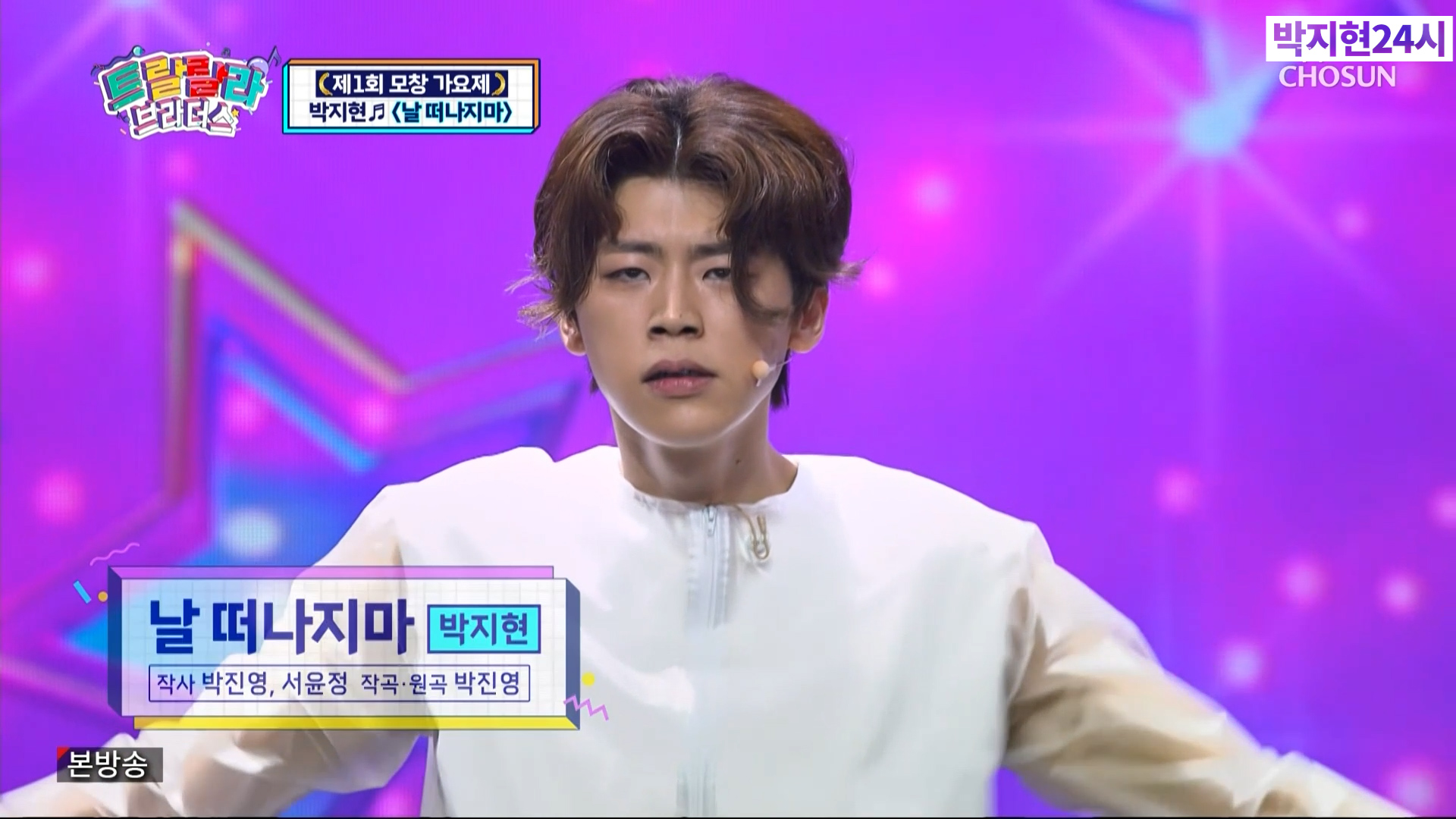 박지현은 박진영의 '날 떠나지마'노래를 마치 박진영으로 빙의된 듯하게 완벽한 재현으로 화제가 됐습니다