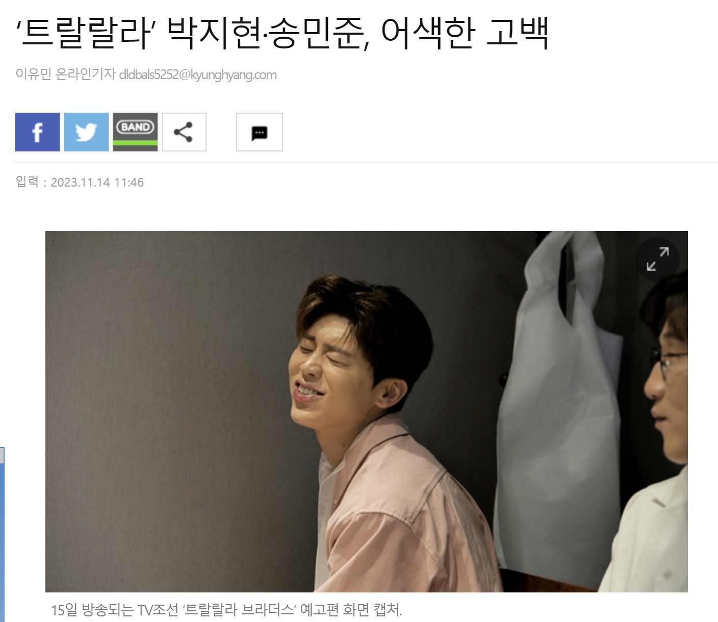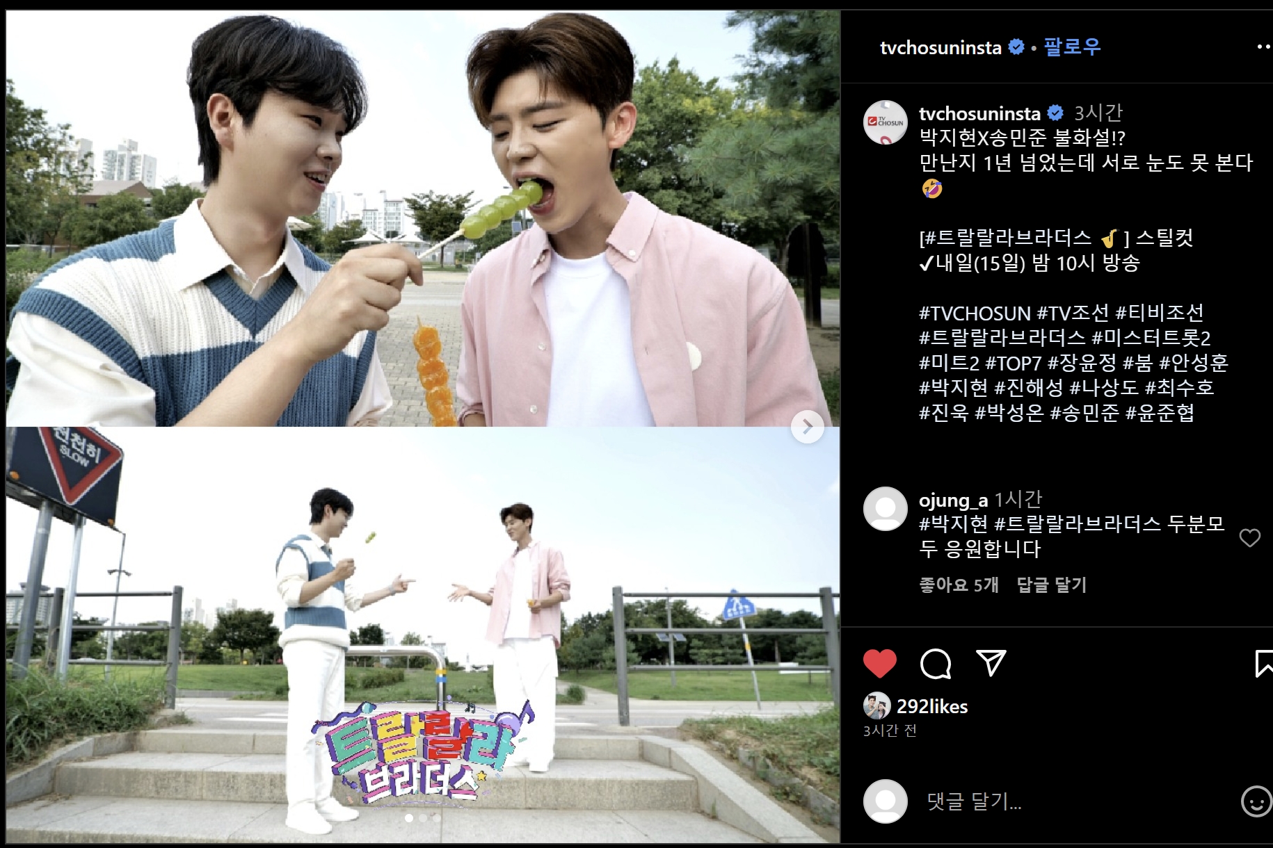 tv조선 공계에서 트랄랄라 브라더스 스틸컷 사진을 공개했습니다