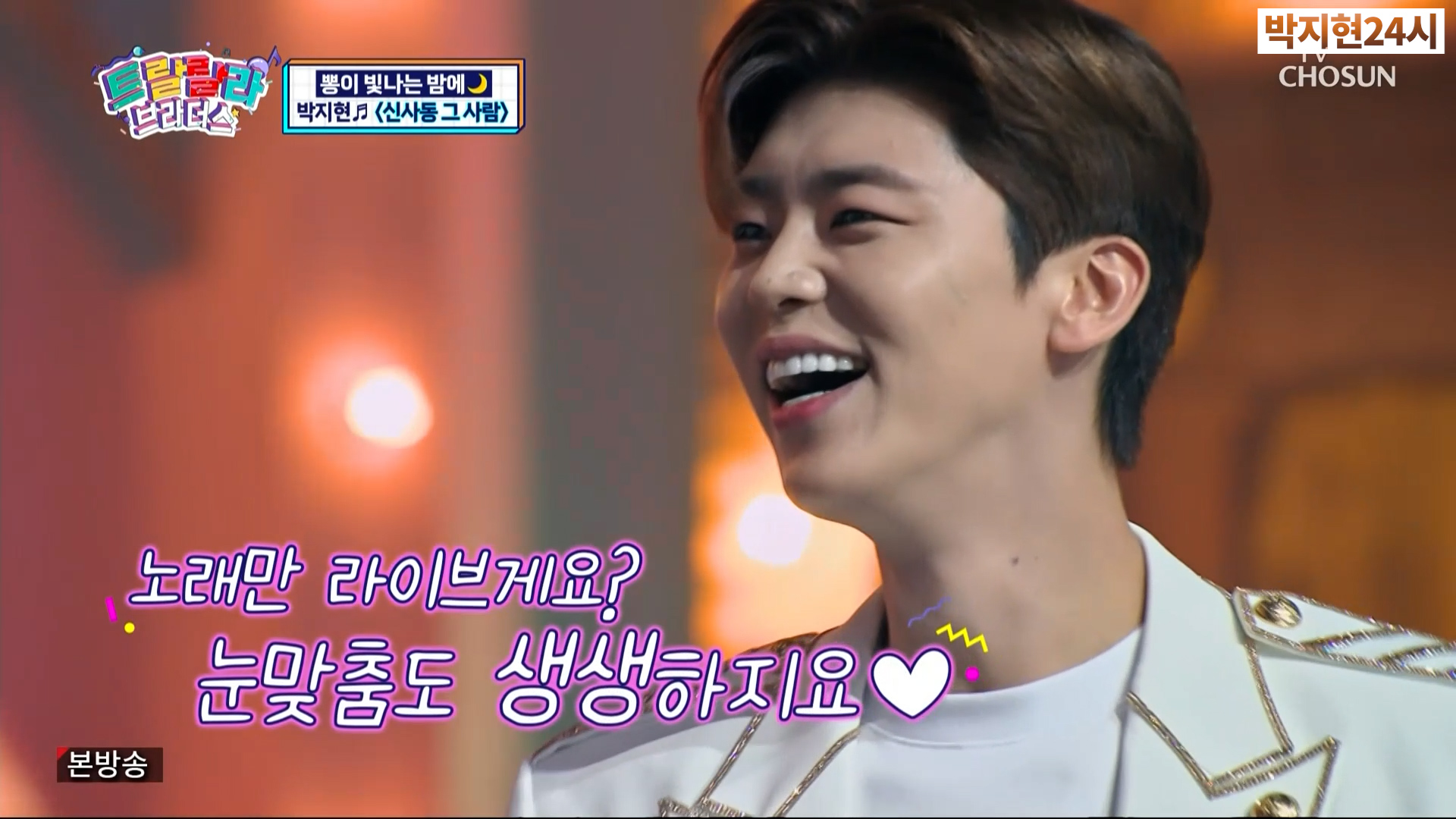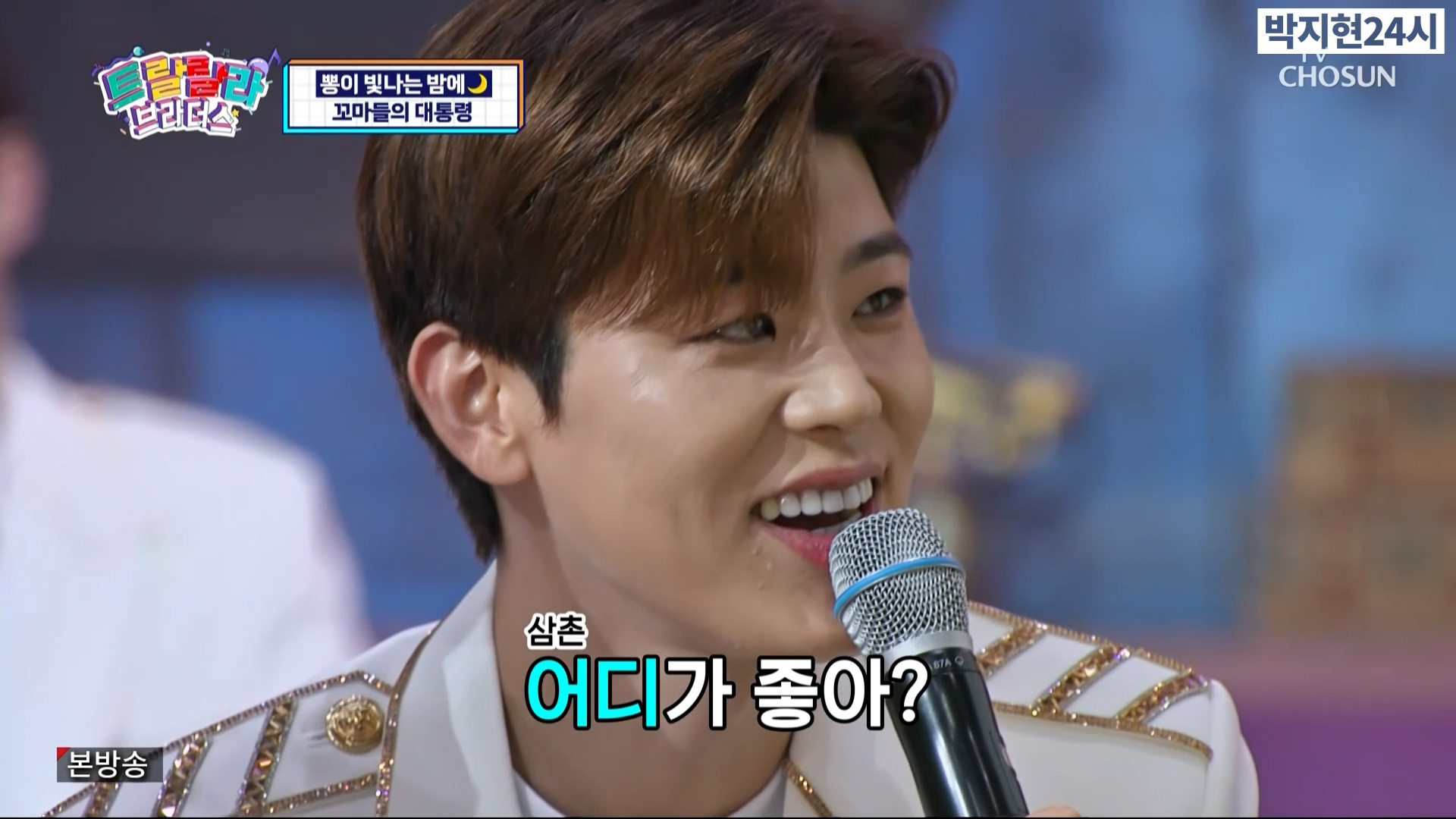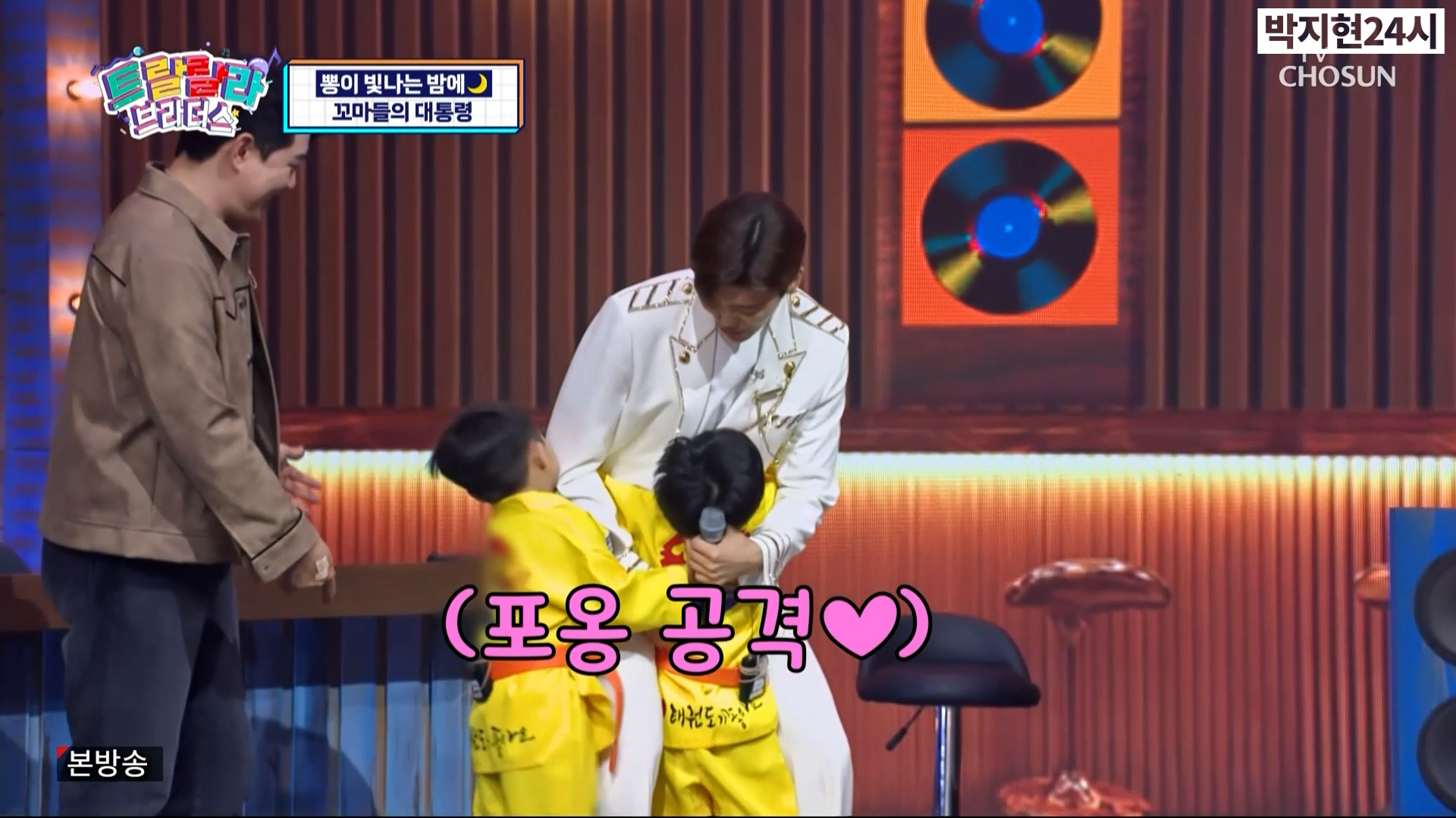 '뽕이 빛나는 밤에' 코너에서는 6살,7살 꼬마들이 박지현이 멋있다며 '꼬마들의 대통령 원 앤 온리 박지현님'이라며 꼬마 친구들을 직접 만나서 잘 자라라고 한마디 해달라는 사연이었습니다