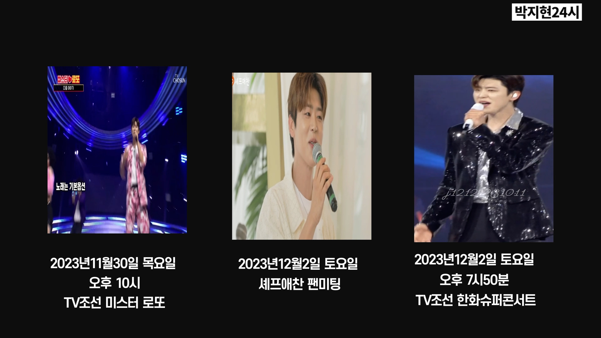 그래도 12월2일 토요일에 셰프애찬 팬미팅과 11월9일에 개최됐던 한화 슈퍼콘서트가 tv조선에서 방송해줍니다