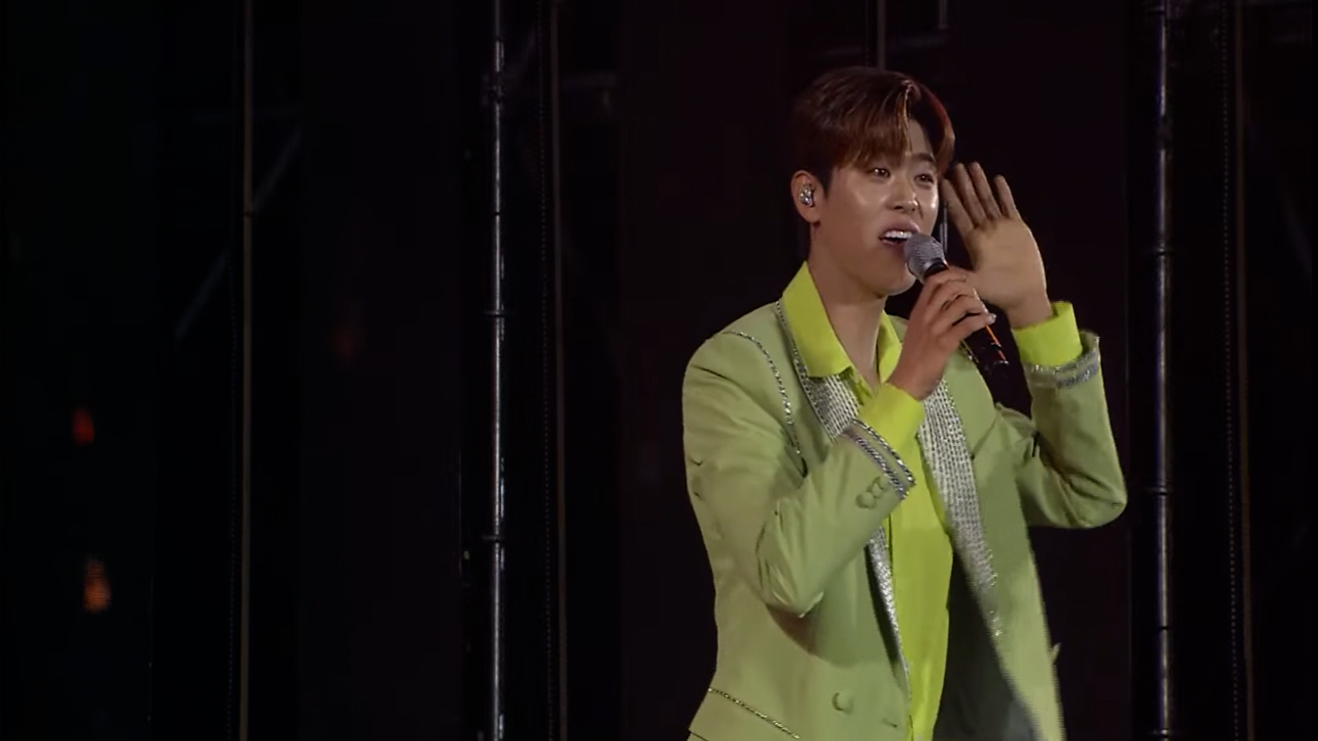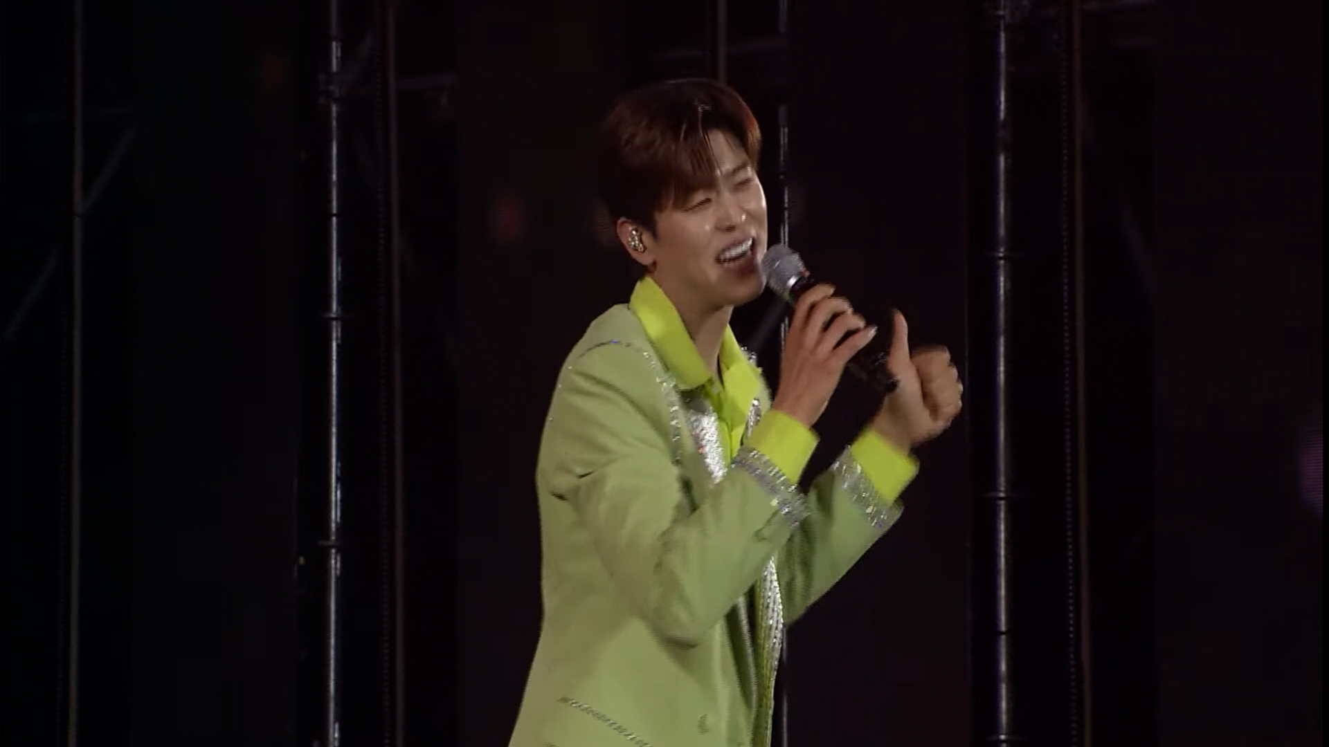 이번 공연에는 연두색 옷을 입고나왔는데 마치 풋사과처럼 싱그러운 지현님을 연상시키는 의상이었습니다 첫 번째 곡으로는 '못난놈'을 시원하게 불러주었습니다