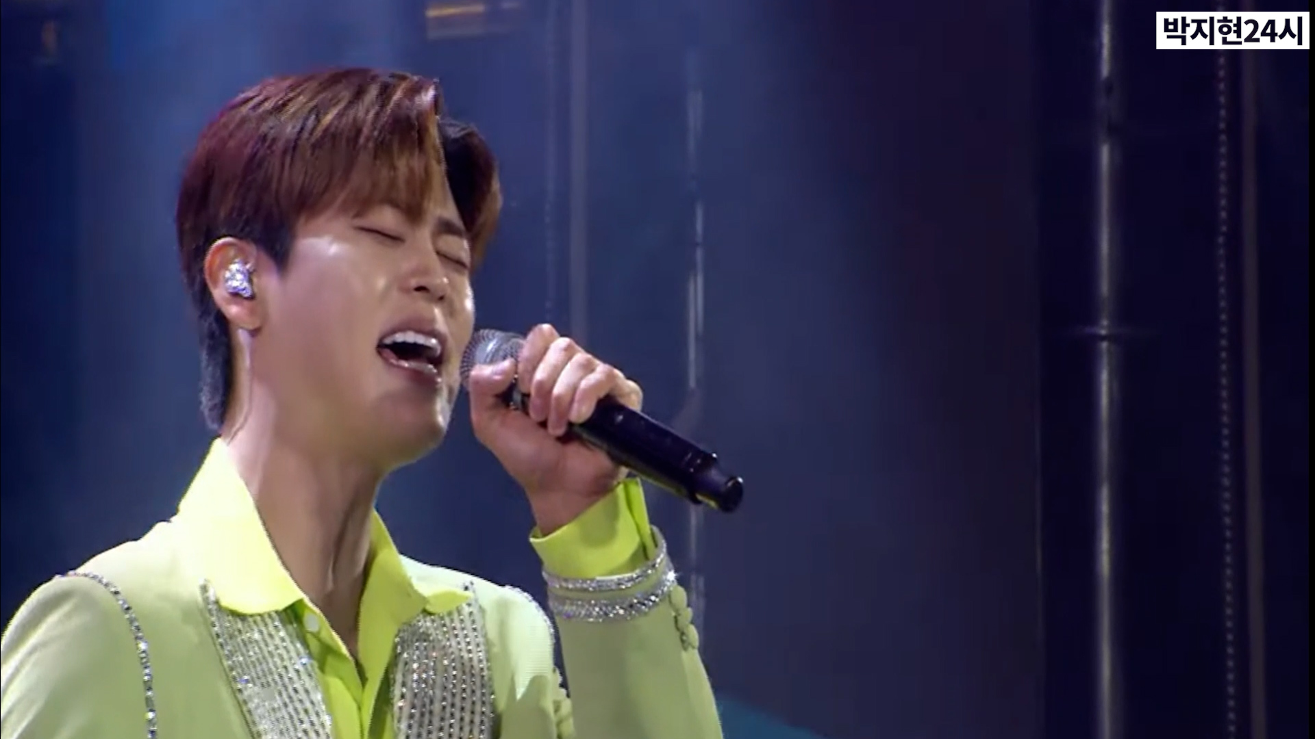 이번 공연에는 연두색 옷을 입고나왔는데 마치 풋사과처럼 싱그러운 지현님을 연상시키는 의상이었습니다 첫 번째 곡으로는 '못난놈'을 시원하게 불러주었습니다