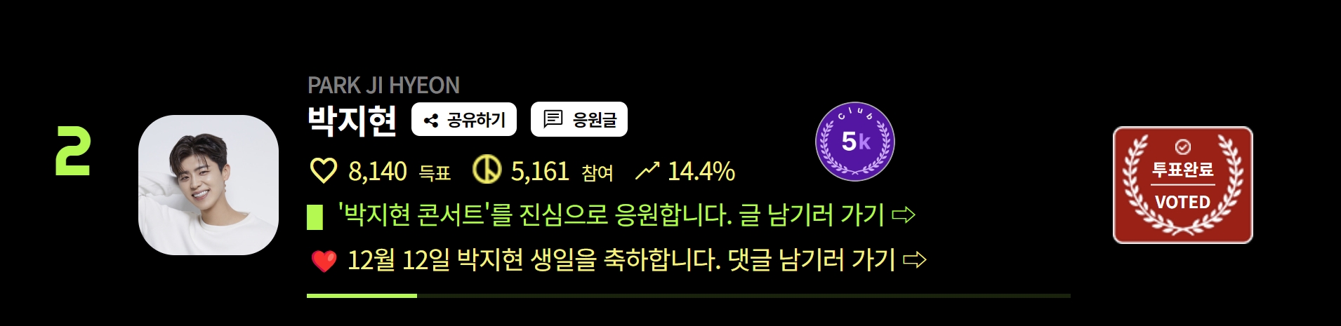 박지현은 지난10월 네티즌어워즈 남자가수상 부문에서 2위를 차지한바 있습니다