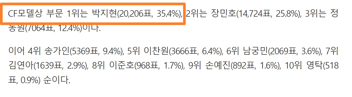 또 네티즌 어워즈 CF모델상 부문에 박지현이 1위를 차지하고 있다는 기사입니다