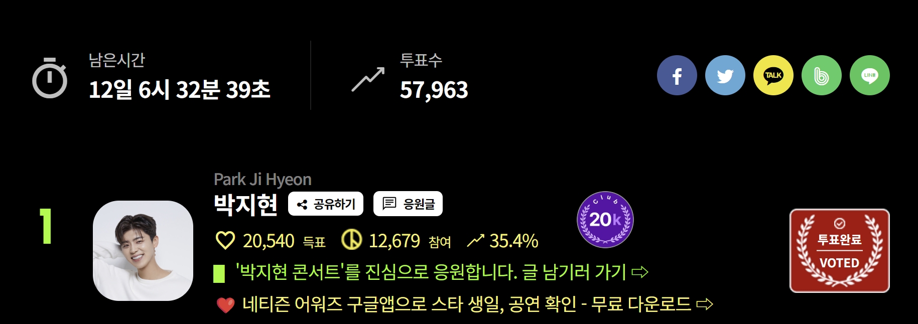 남은 기간도 열심히 투표해서 꼭 1위로 마무리했으면 좋겠습니다
