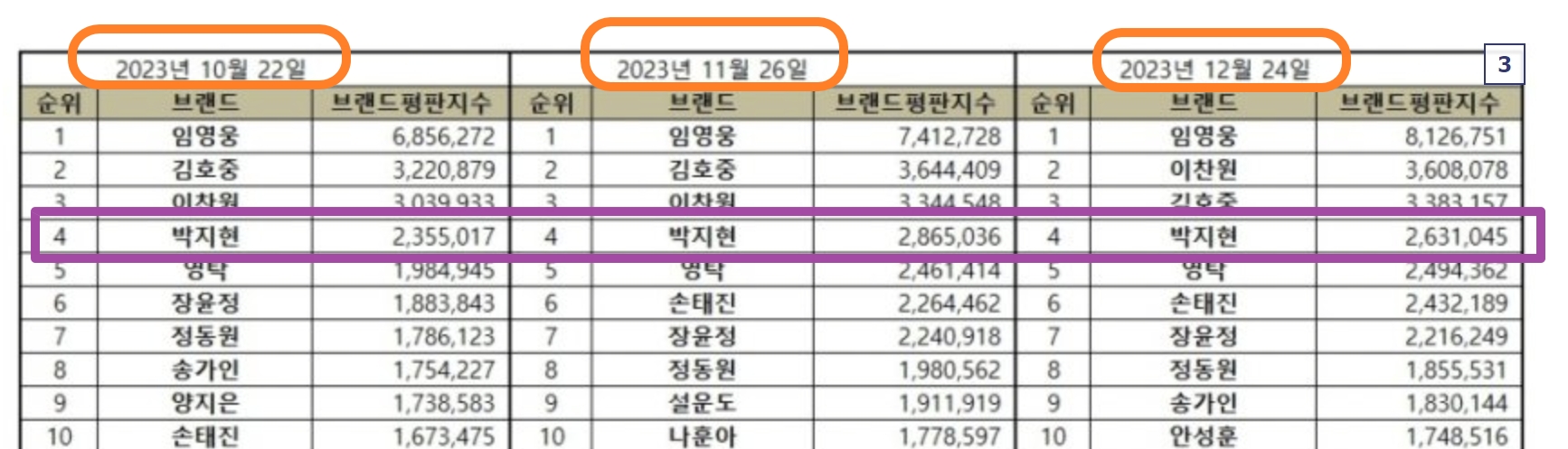 참여지수371,963 ,미디어지수644,641 , 소통지수762,513 ,커뮤니티 지수851,928이 되면서 브랜드 평판지수2,631,045로 브랜드평판지수 4위를 차지했습니다