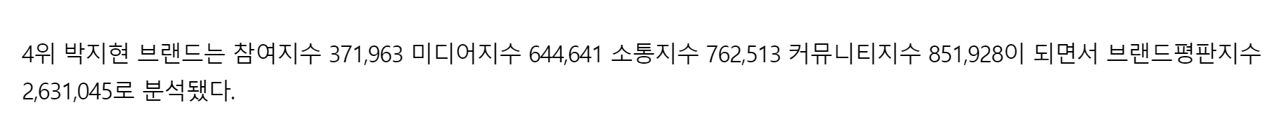 '박지현 트로트 가수 브랜드평판 석달 연속4위..추천지수 임영웅 턱밑 추격'이란 제목의 기사가 게재되기도 했습니다