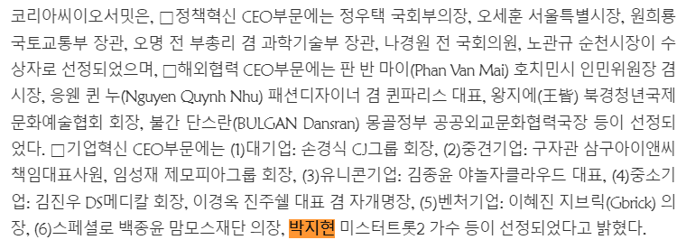 근데 오늘 수상자가 변경돼서 지현님이 상을 안받게 되셨다고 합니다