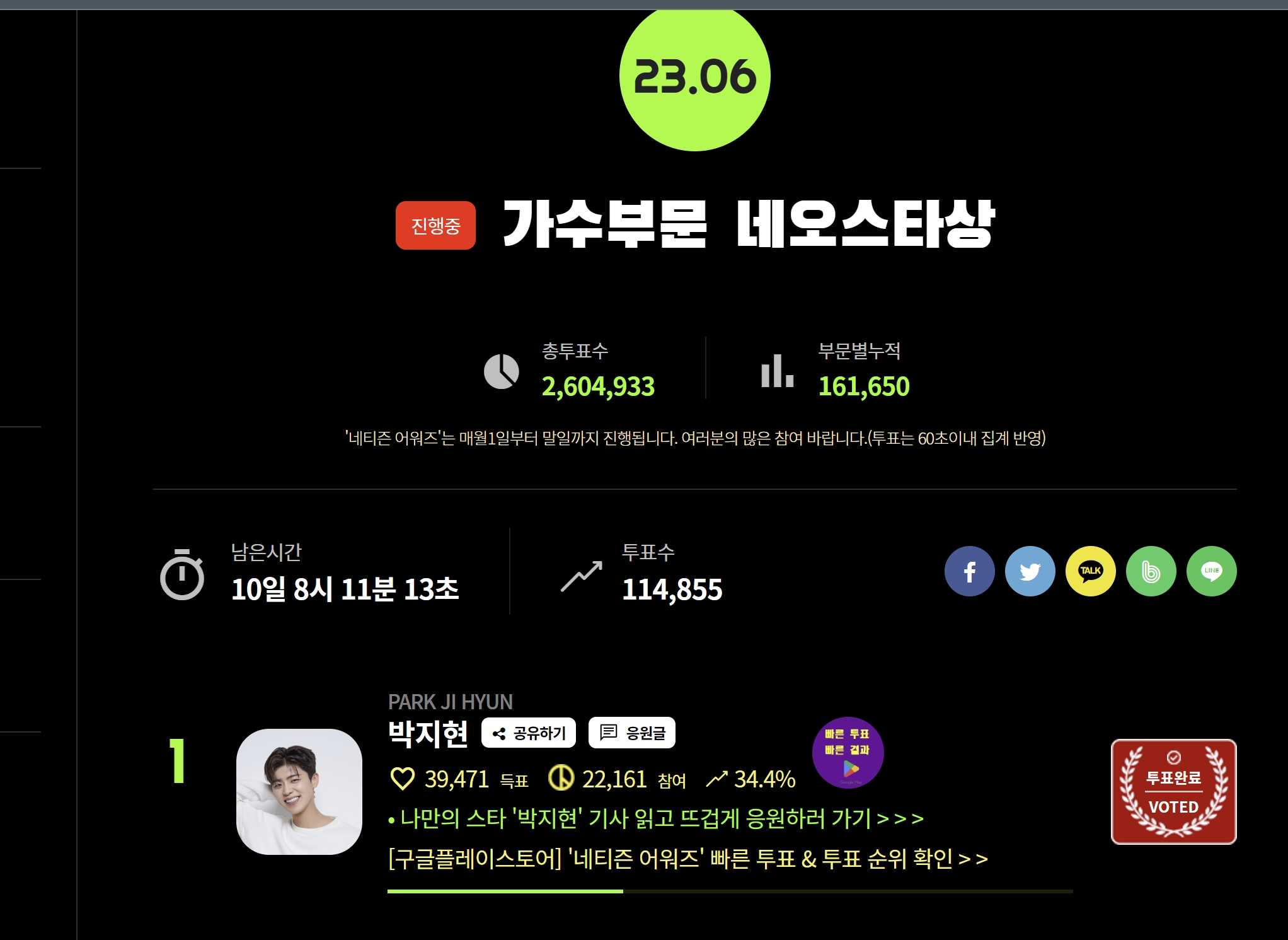 하지만 뜨거운 투표 열기로 2위와의 격차가 크지 않기 때문에 30일까지 잊지말고 열심히 투표해주시면 감사하겠습니다