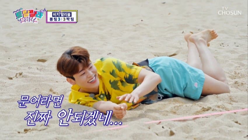 문어 라면이 걸린 <비치 발리볼 대결>에서 결국 짝팀이 우승해서 짝팀이 문어라면을 획득합니다