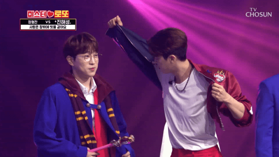진해성이'사랑은 창 밖의 빗물 같아요'를 부를 때 안성훈과 박지현의 영화 '클래식'의 한 장면을 패러디 한 것도 너무 재밌었습니다