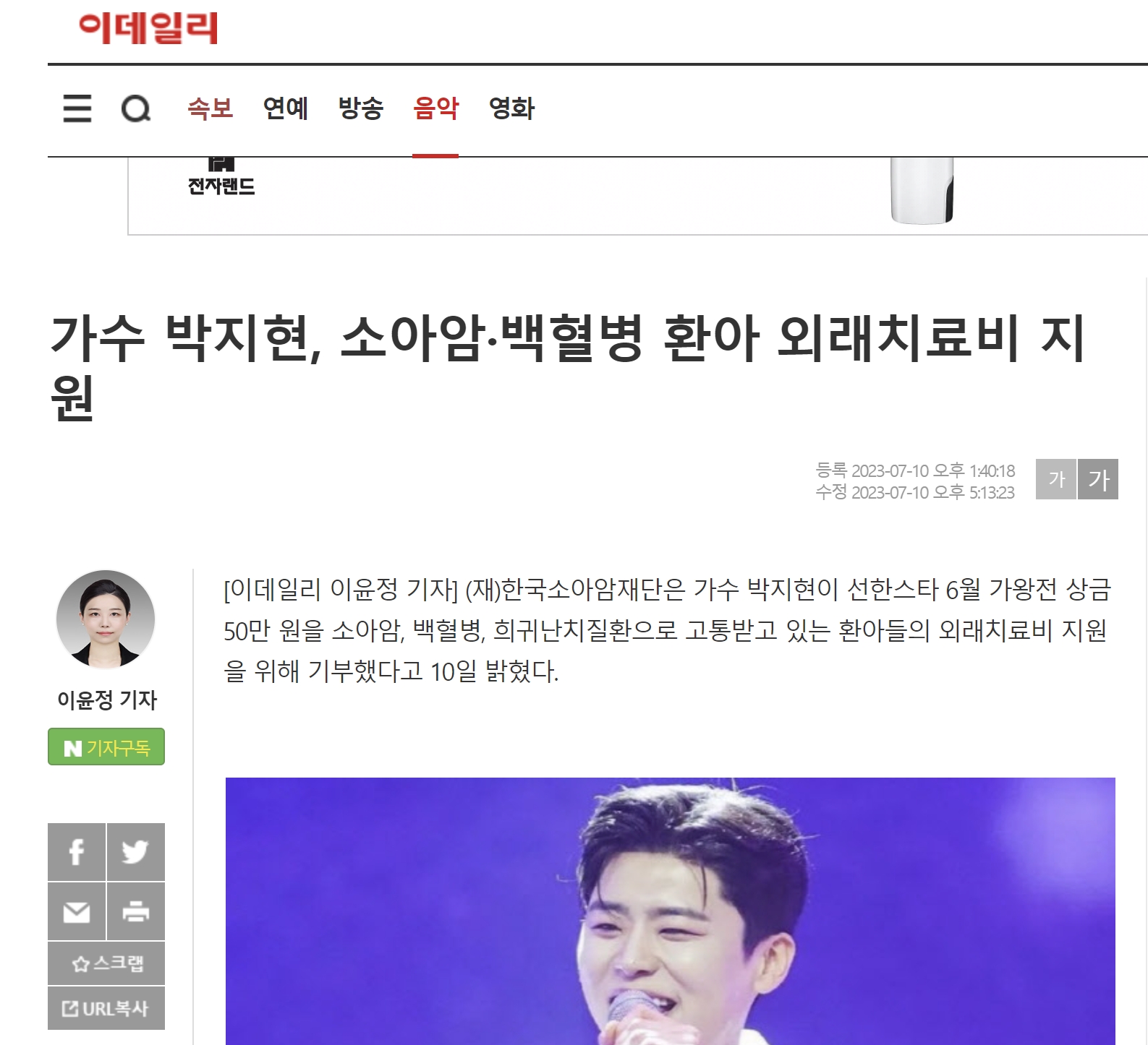 박지현 2023년7월11일 박지현 소식 모음(박지현 선왕가왕전 상금 기부소식,제습기 광고모델로 가장 잘 어울리는 가수1위 소식)