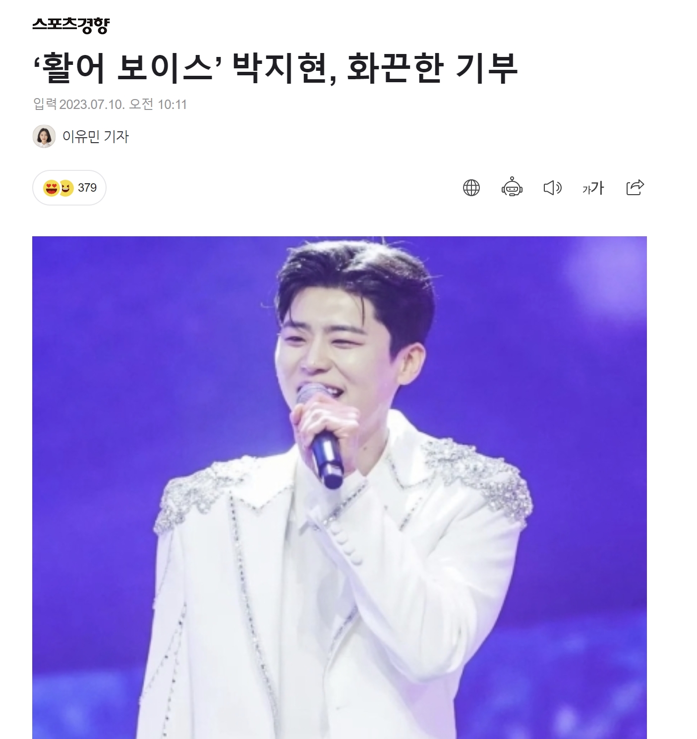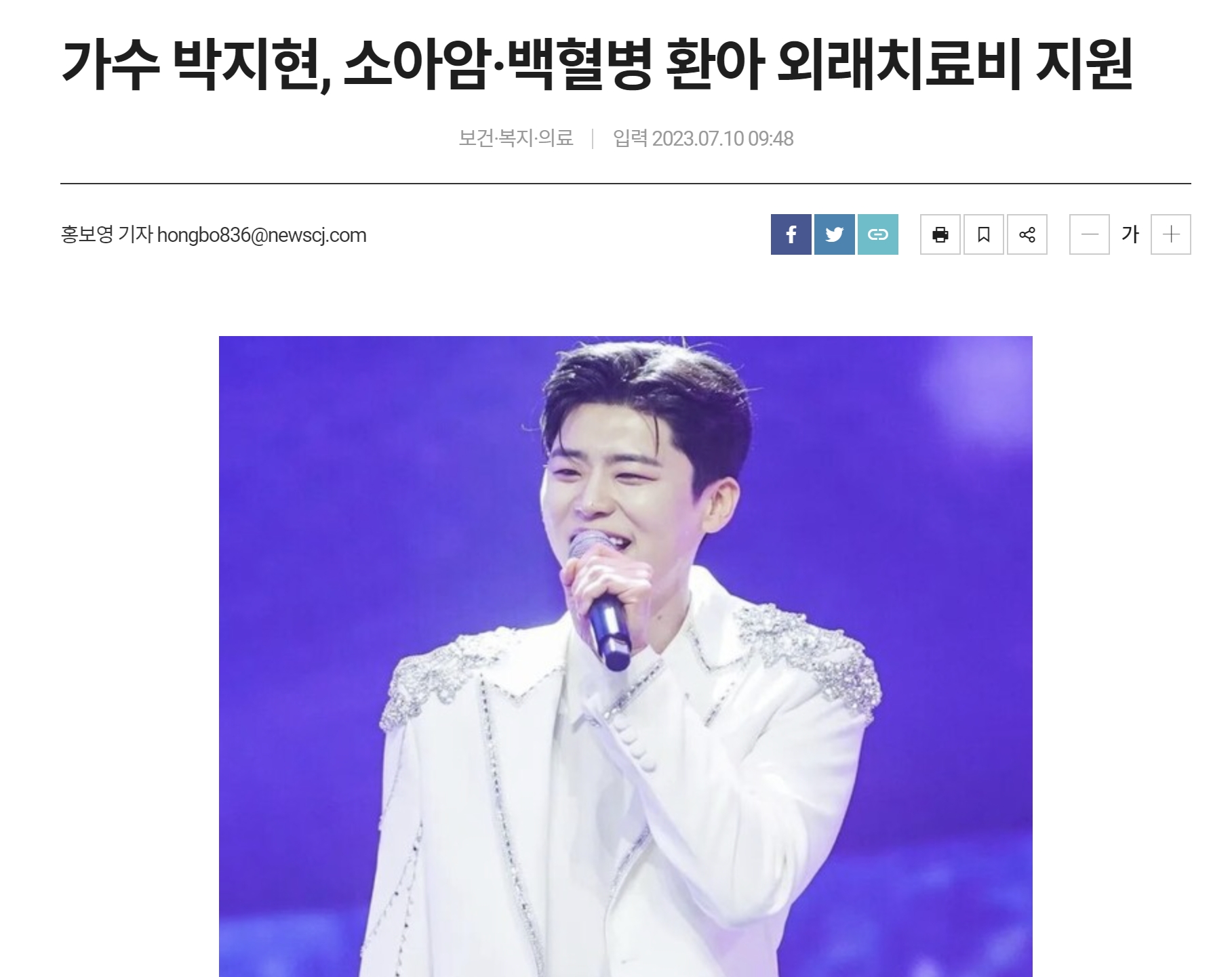 또 선한스타 가왕전에 받은 상금 전액을 소아암,백혈병등 고통받는 환아들의 치료비 지원을 위해 기부하며 선한 영향력을 행사했다는 기사가 게재되었습니다