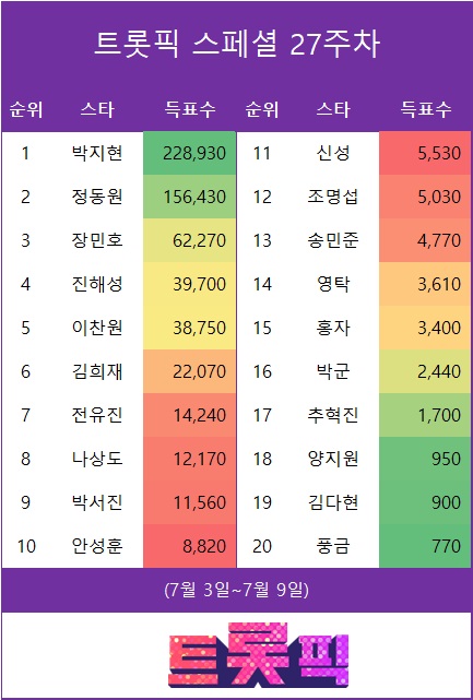 그동안 트롯픽 투표인 맥주광고,시구 승리요정,일룸소파 광고 모델로 어울리는 스타로 선정되며 팬들의 절대적인 응원을 받고 있습니다