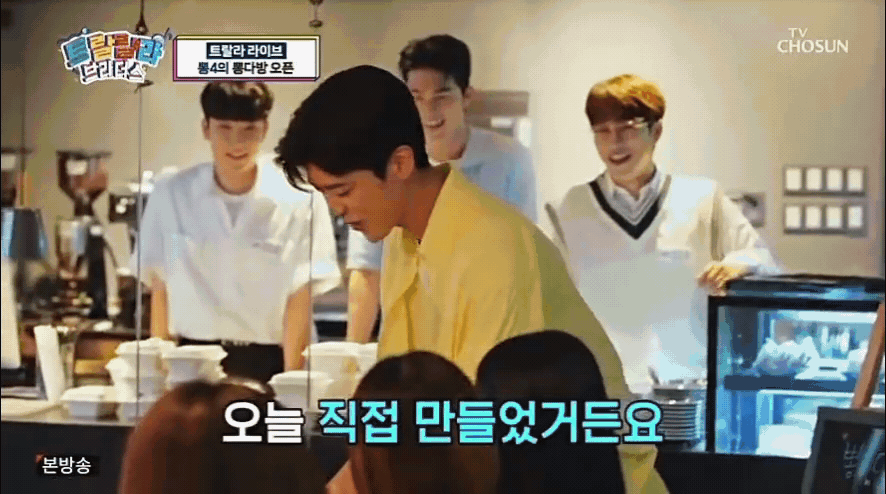 트랄라 라이브 코너에서는 안성훈,박지현,윤준협,최수호가 F4, 아니 뽕4로 뽕다방을 오픈합니다