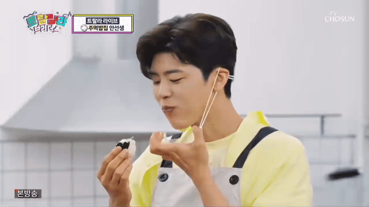 뽕다방 오픈 전에 직접 주먹밥을 싸면서 팬들을 위해 정성껏 팬들에게 선물할 음식을 만듭니다