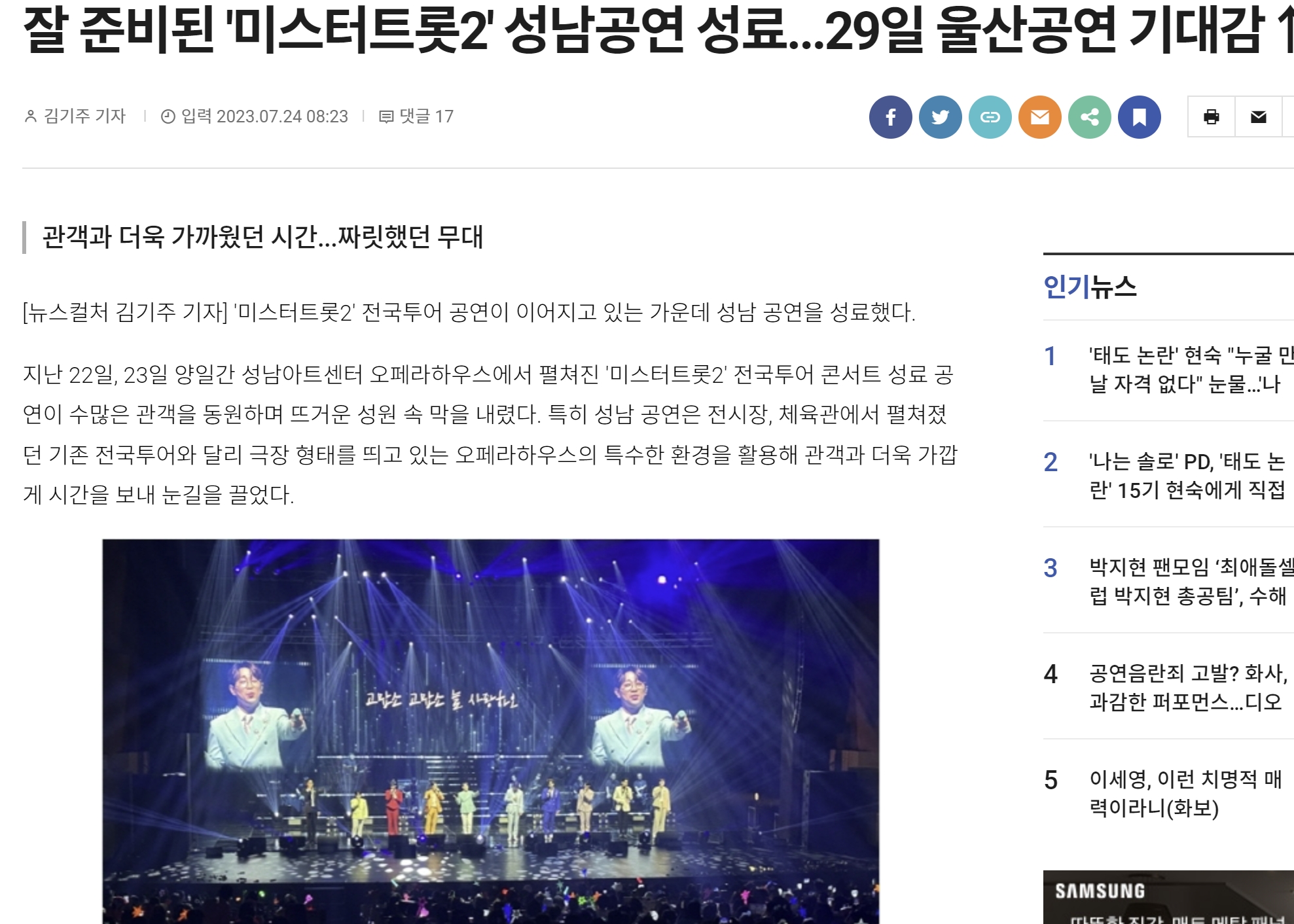 박지현 2023년7월24일 박지현 소식 모음(20230723 미스터트롯2 성남 콘서트 관련 소식)