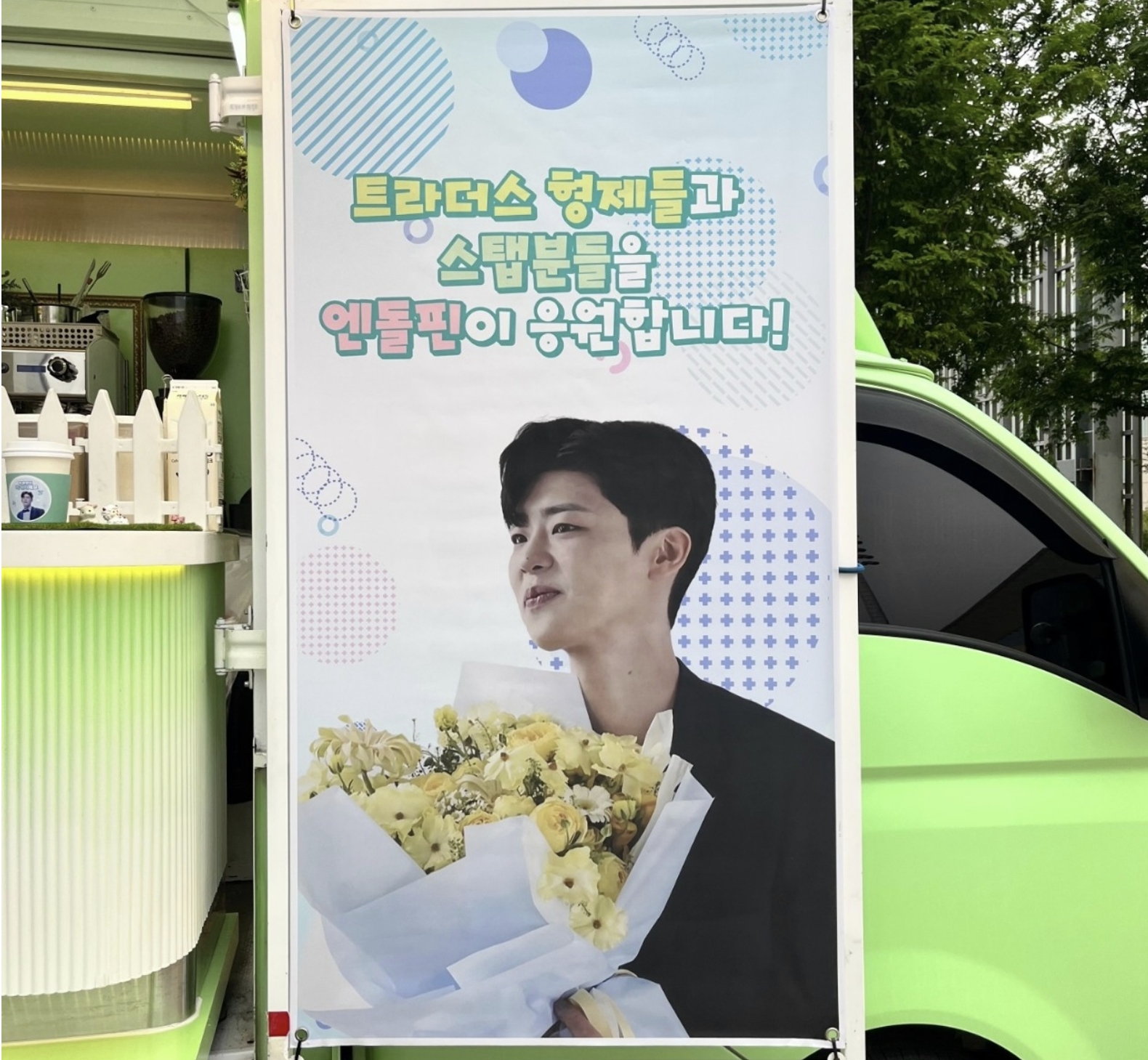 엔돌핀분들이 트랄랄라 촬영장에 시원한 음료수를 서포트했습니다