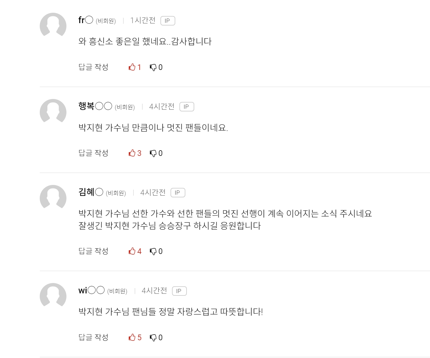 팬분들의 선한 영향력 정말 감사드리며 멋진 가수의 멋진팬이여서 너무 행복합니다