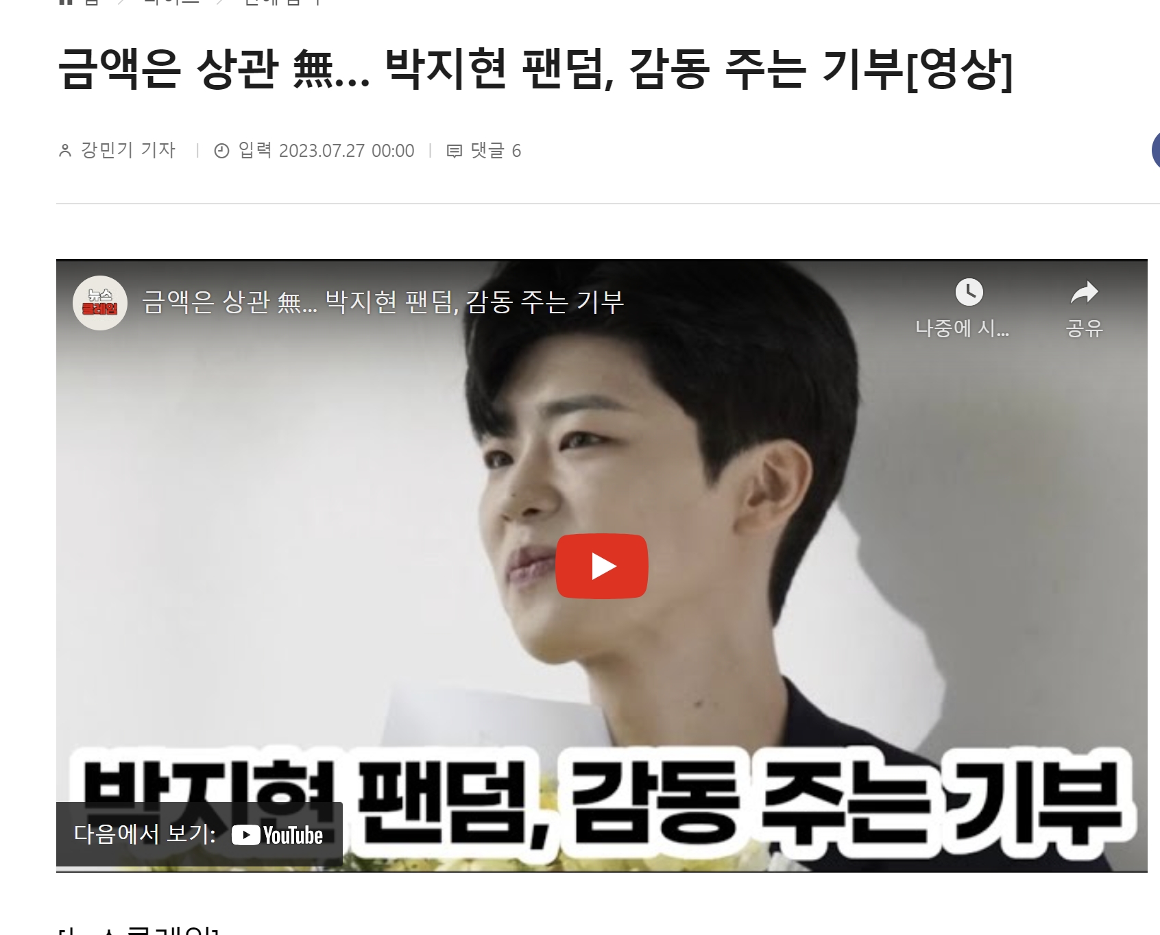 박지현 2023년7월28일 금요일 박지현 소식모음(박지현팬 기부소식,미스터로또 관련 소식)