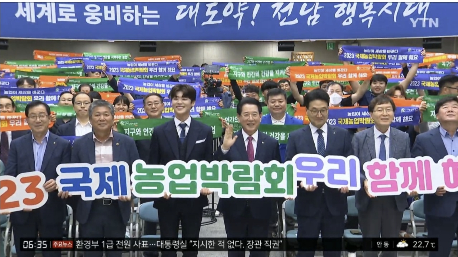 7월3일 농업박람회 홍보대사 위촉식에 관한 뉴스가 신문지면과 뉴스등 각종 매체를 통해 전해졌습니다