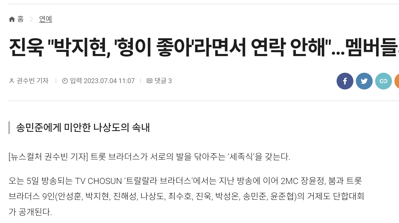 형들의 이같은 거침없는 폭로에 당황한 박지현이 어떤 반응을 보일지는 7월5일 수요일 오후10시 티비조선 트랄랄라 브라더스에서 확인하실 수 있습니다