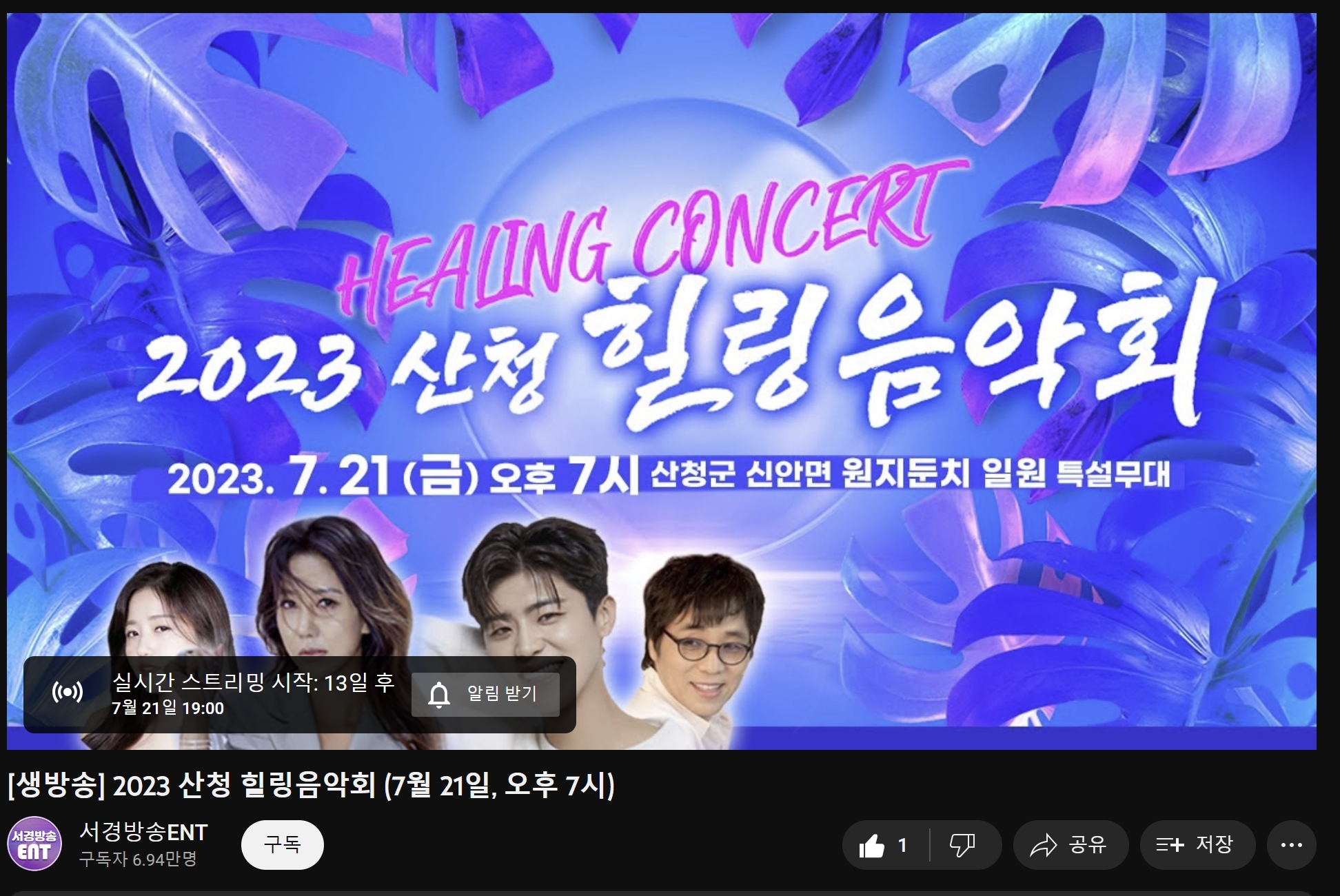 첫 번째 소식은 2023 산청 힐링 음악회 관련 소식입니다