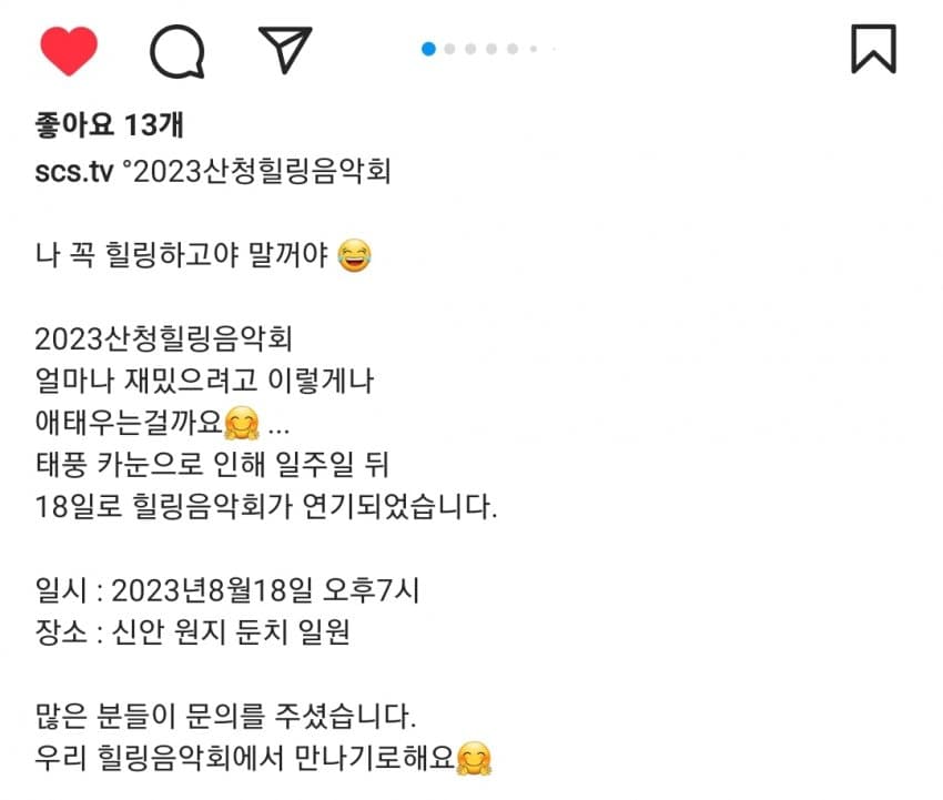 2023년 산청 힐링음악회가 또 연기되어서 많은 팬 분들이 아쉬운 마음이 크실텐데요!