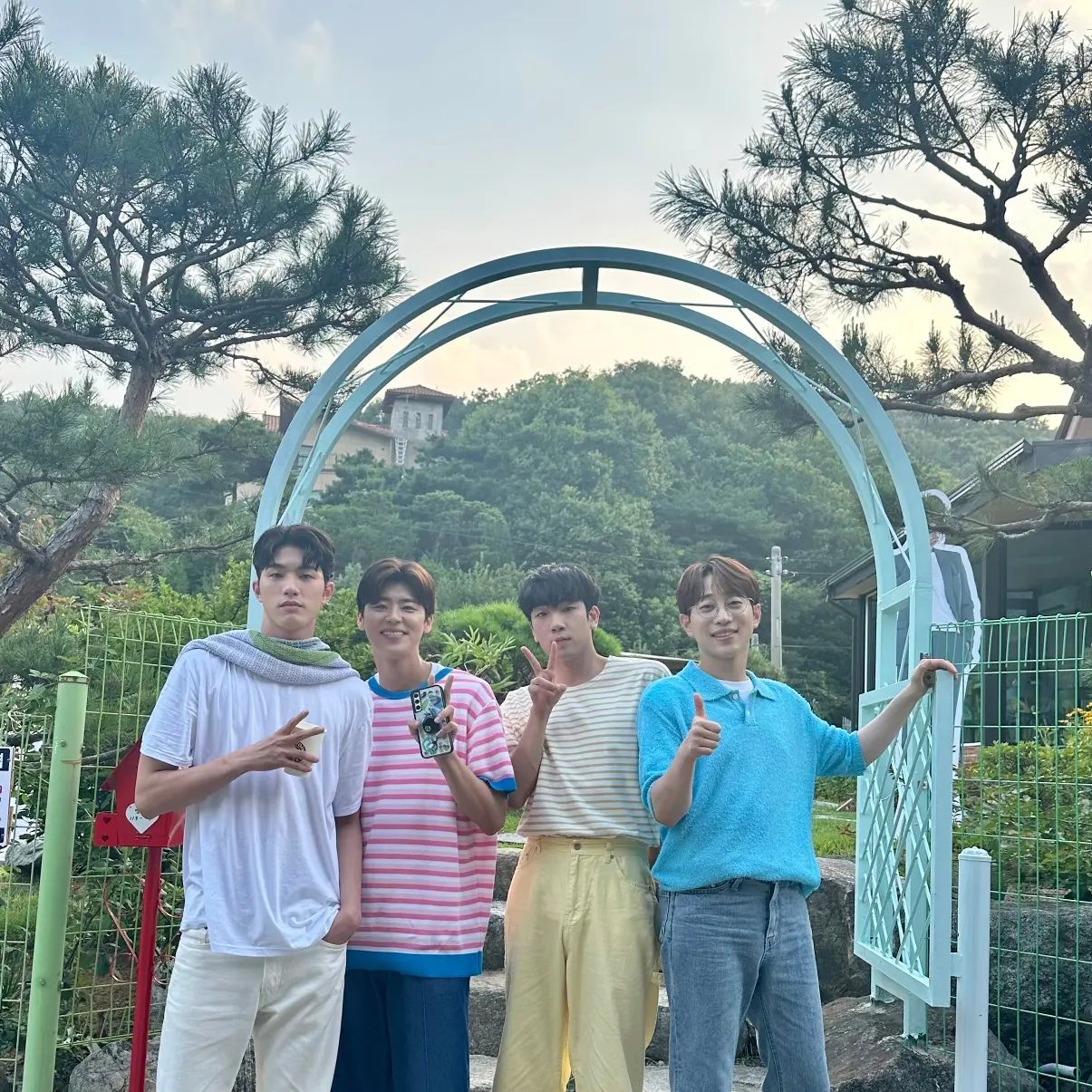 안성훈이 인스타에 뽕팀 4인방과 트랄랄라 브라더스 촬영중 찍은 사진을 공개했습니다