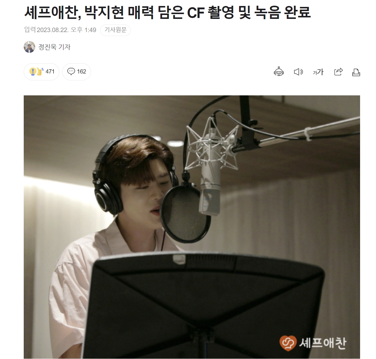 셰프애찬은 2대 모델인 박지현이 CF촬영을 마치고 8월16일 녹음을 진행했다고 밝혔습니다
