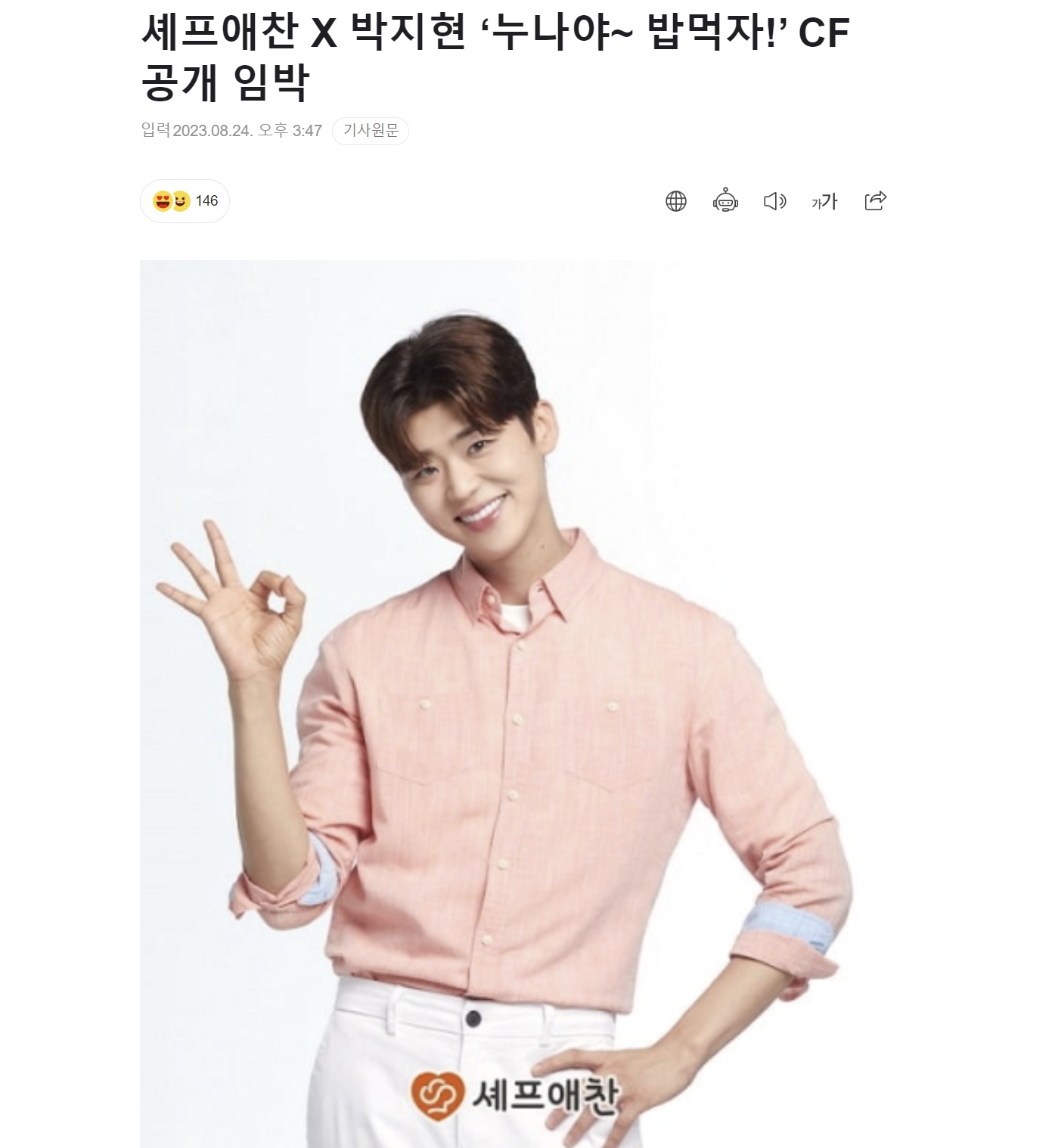 또한 셰프애찬 관련 기사에는 CF는 8월 30일부터 TV조선에서 송출되며 다양한 이벤트와 박지현을 만날 수 있는 팬미팅도 계획 중이라고 밝혔습니다