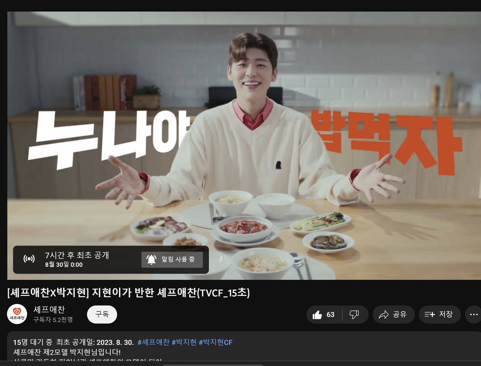 8월30일 자정 0시에 셰프애찬 TV CF가 최초 공개됩니다